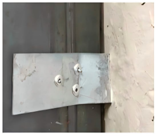 In the tensile test (see Figure 17), the connector was considered to reach the bearing-capacity limit state of the connection when it pulled out the plastic expansion plug. The average tensile ultimate bearing capacities of the three test points were 466.7 kN, 1000.0 kN, and 1866.7 kN, respectively, when one, two, and three fasteners were fixed. The connector was separated from the panel, and the panel corresponded to a complete hole.