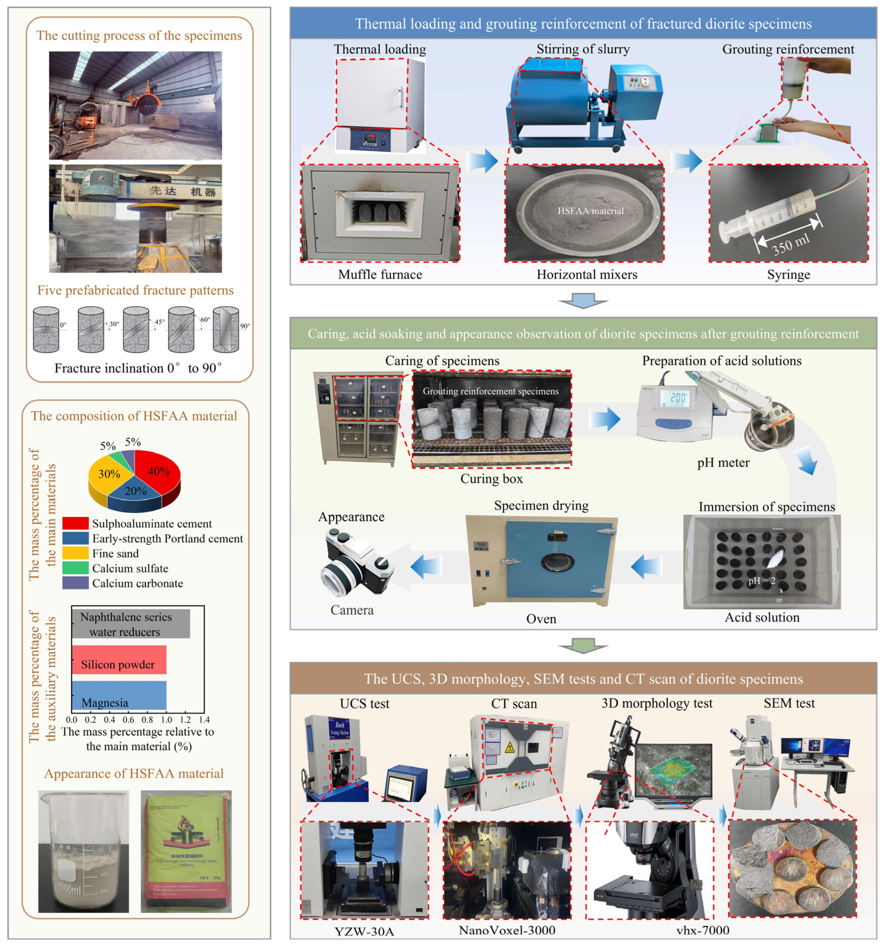 Cui, Y.; Zhang, H.; Liu, T.; Yang, Z.; Zhang, Y.; Ling, X. Mechanical Performance Degradation and Microstructural Evolution of Grout-Reinforced Fractured Diorite Under High Temperature and Acidic Corrosion Coupling. Buildings 2025, 15, 3547. https://doi.org/10.3390/buildings15193547