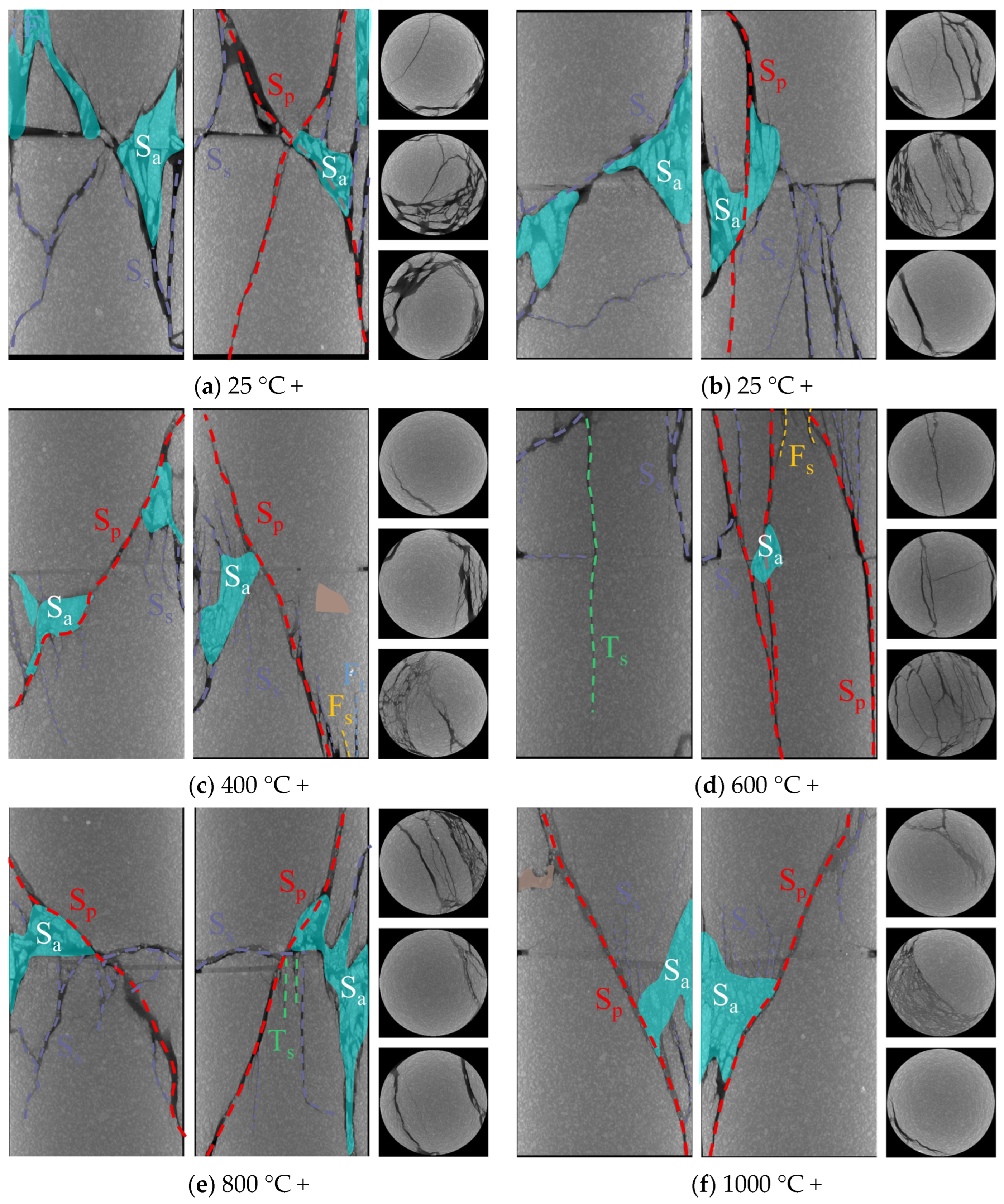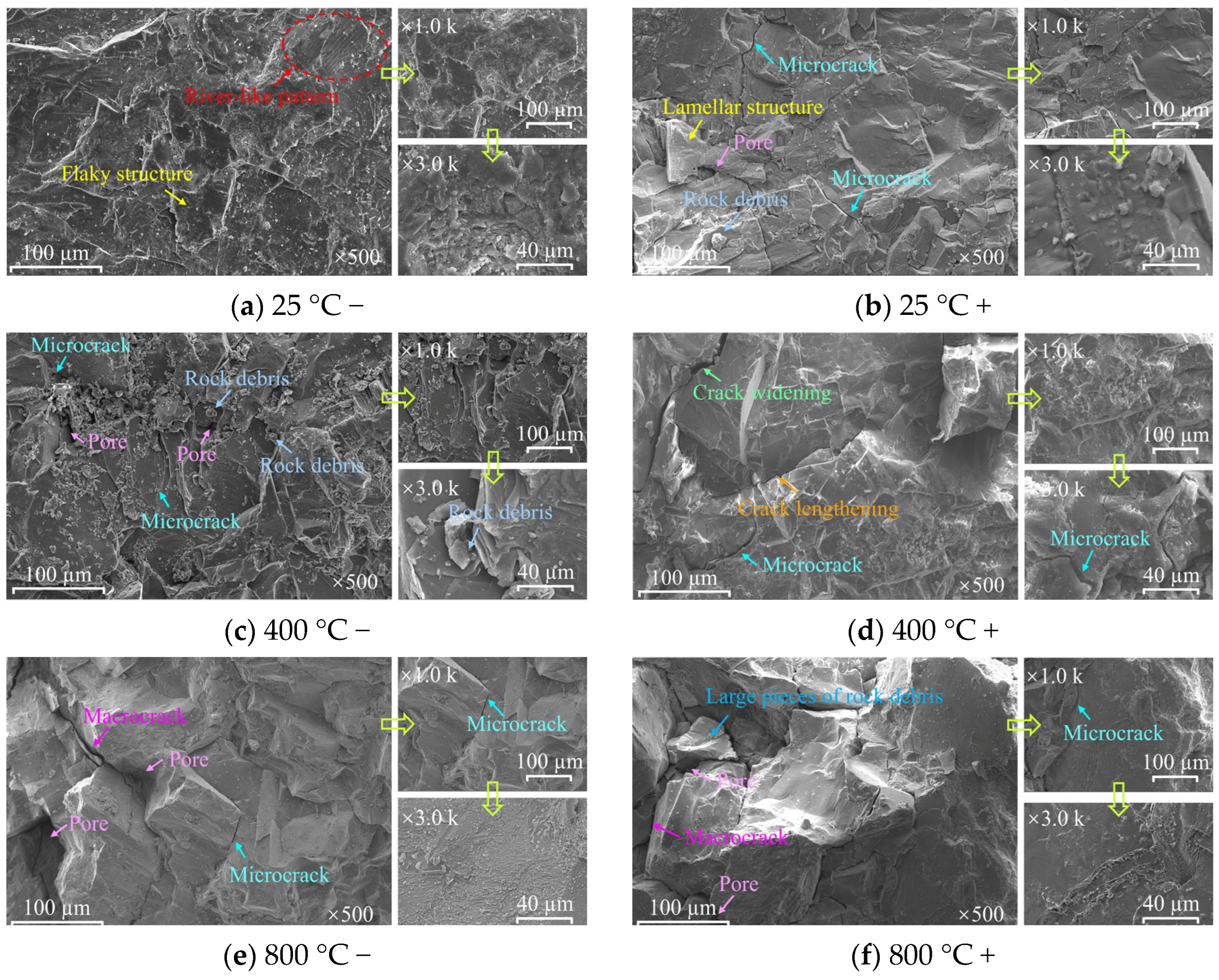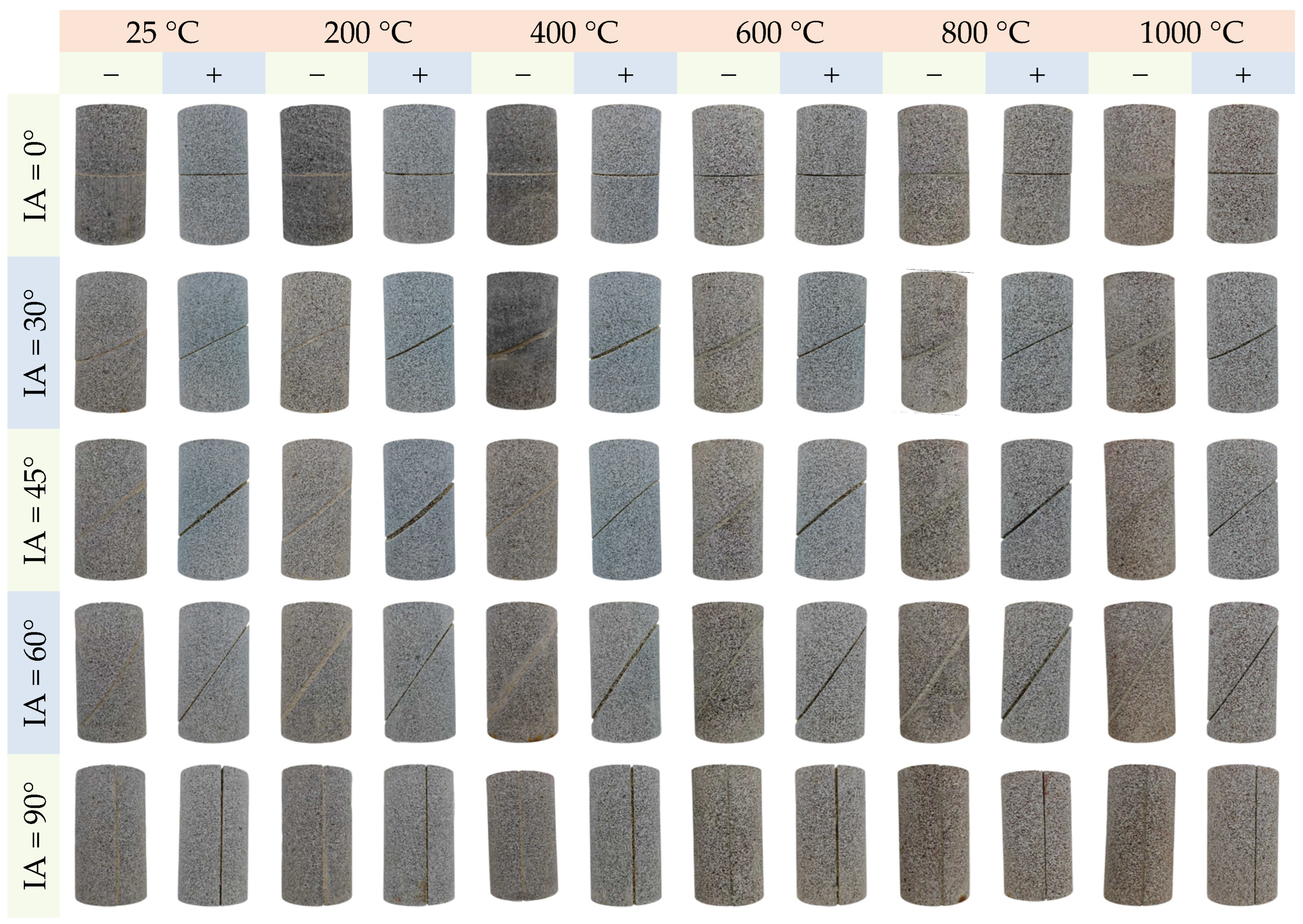 - Yang, S.Q.; Jing, H.W.; Huang, Y.H.; Ranjith, P.G.; Jiao, Y.Y. Fracture mechanical behavior of red sandstone containing a single fissure and two parallel fissures after exposure to different high temperature treatments. J. Struct. Geol. 2014, 69, 245–264. [Google Scholar] [CrossRef]
