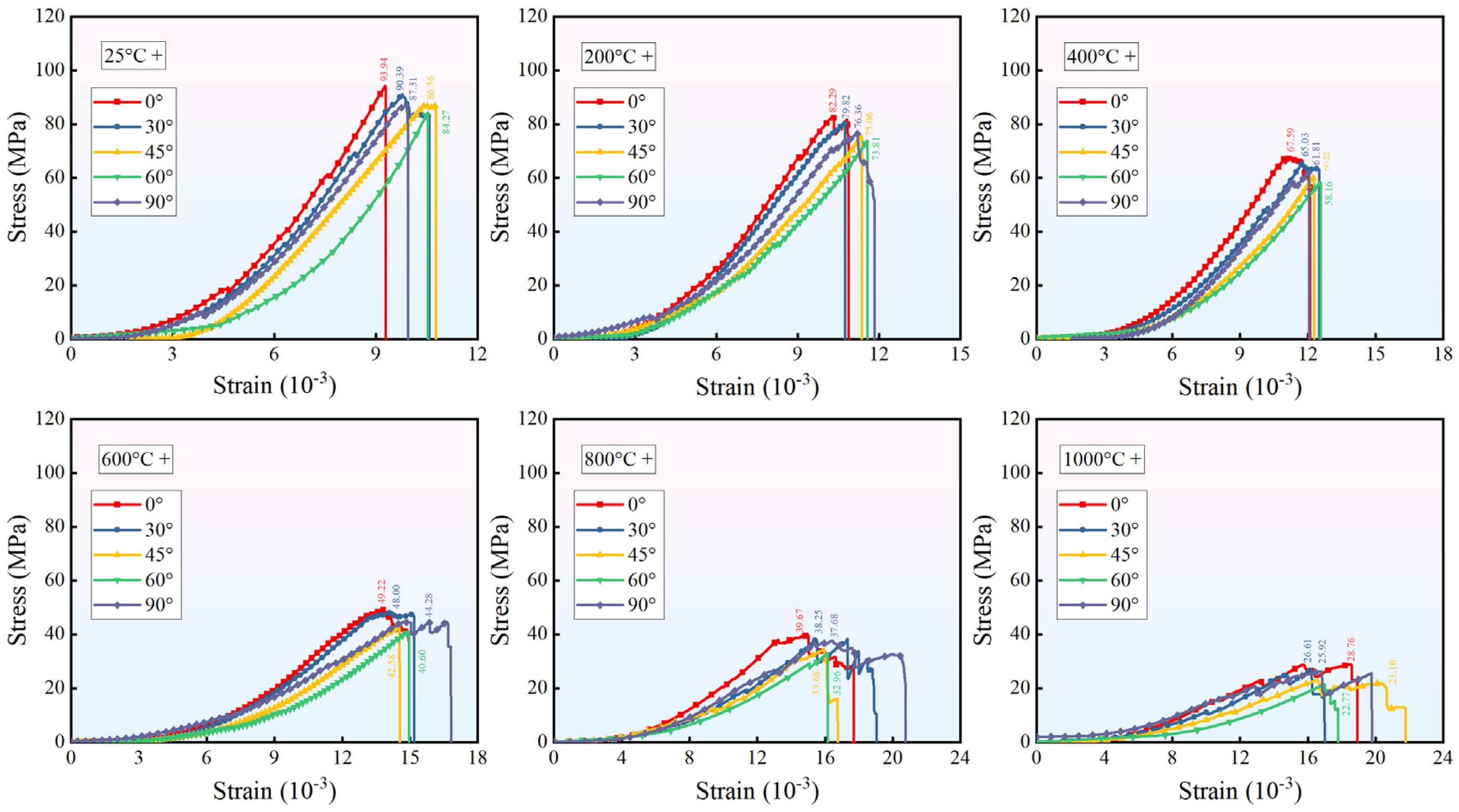 - Increasing fracture angles (0–60°) exacerbated interfacial shear slip and reduced peak strength by up to 69.46% under thermal–acid coupling. Specimens with 90° angles retained higher strength. High temperatures (>600 °C) degraded stiffness and enhanced ductility, while acid corrosion further weakened interfaces and skeletons, amplifying ductile deformation.