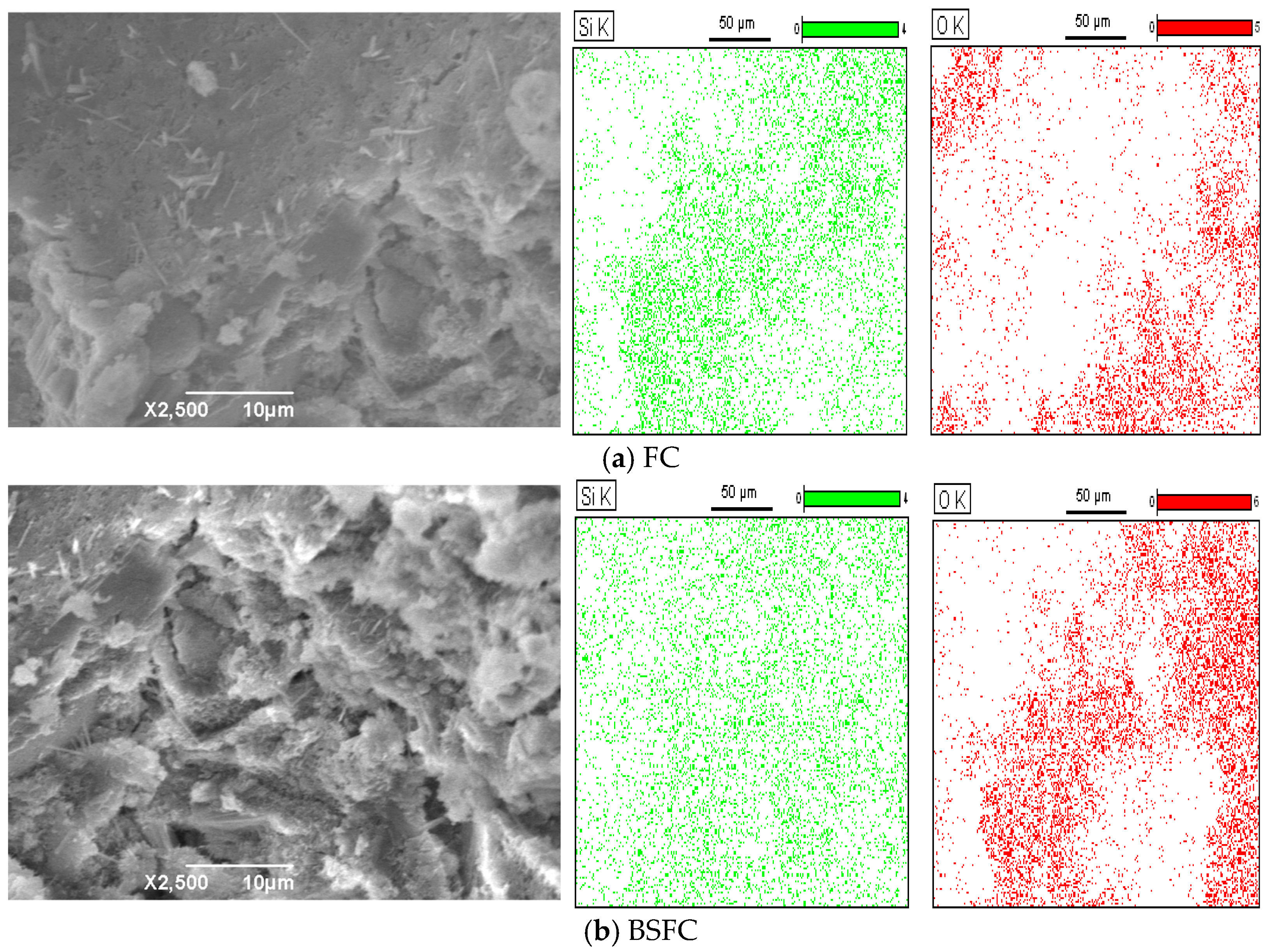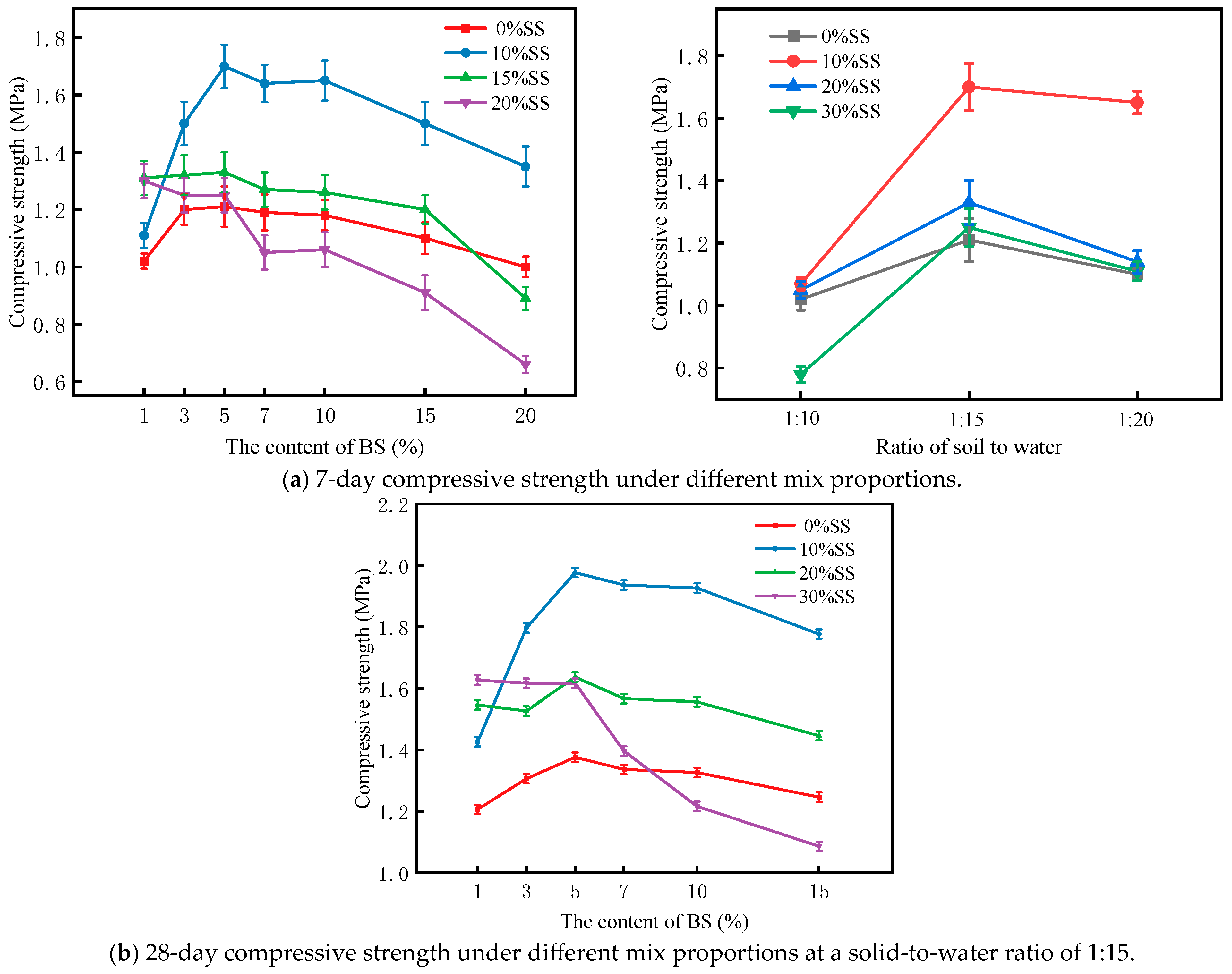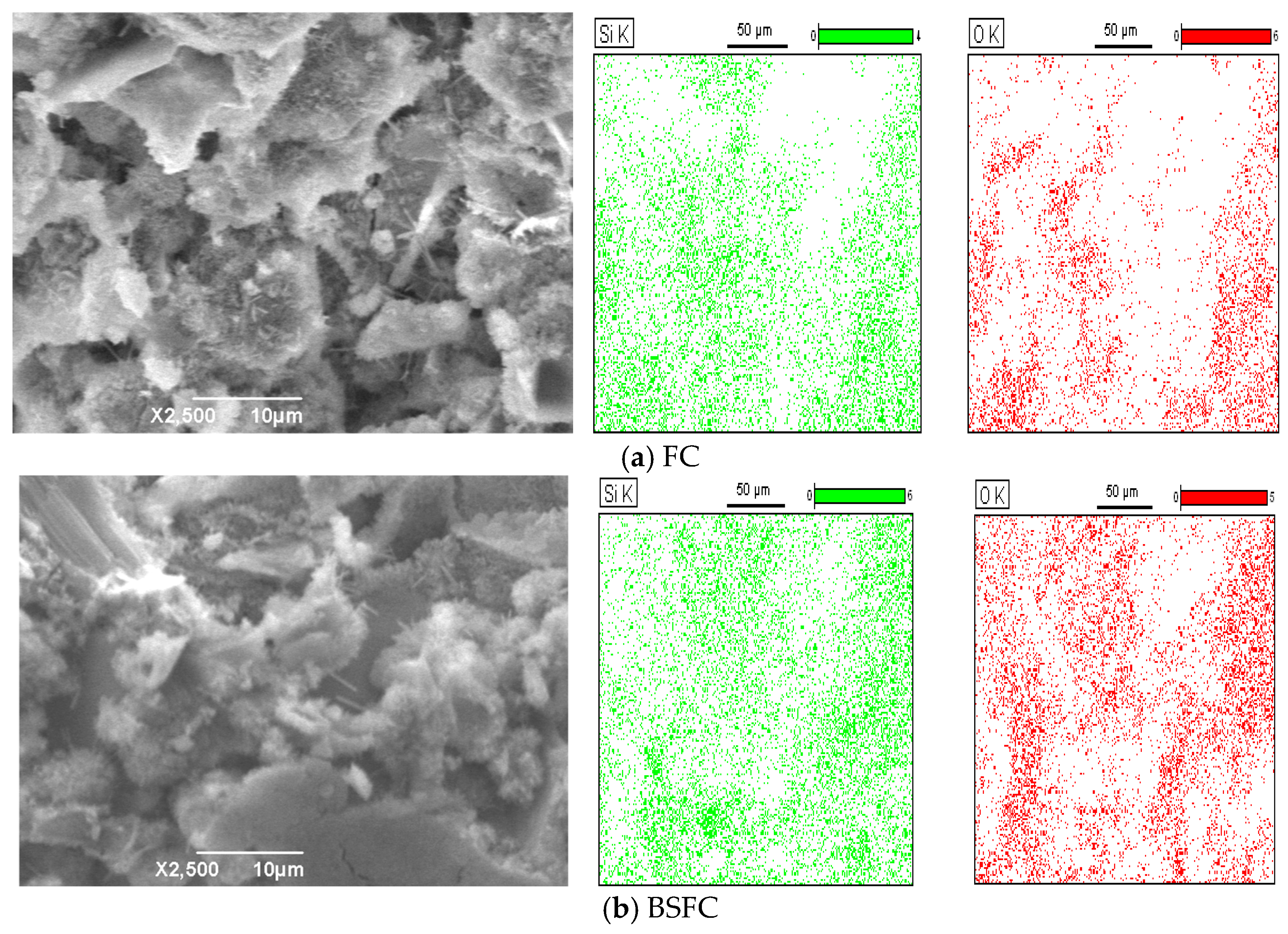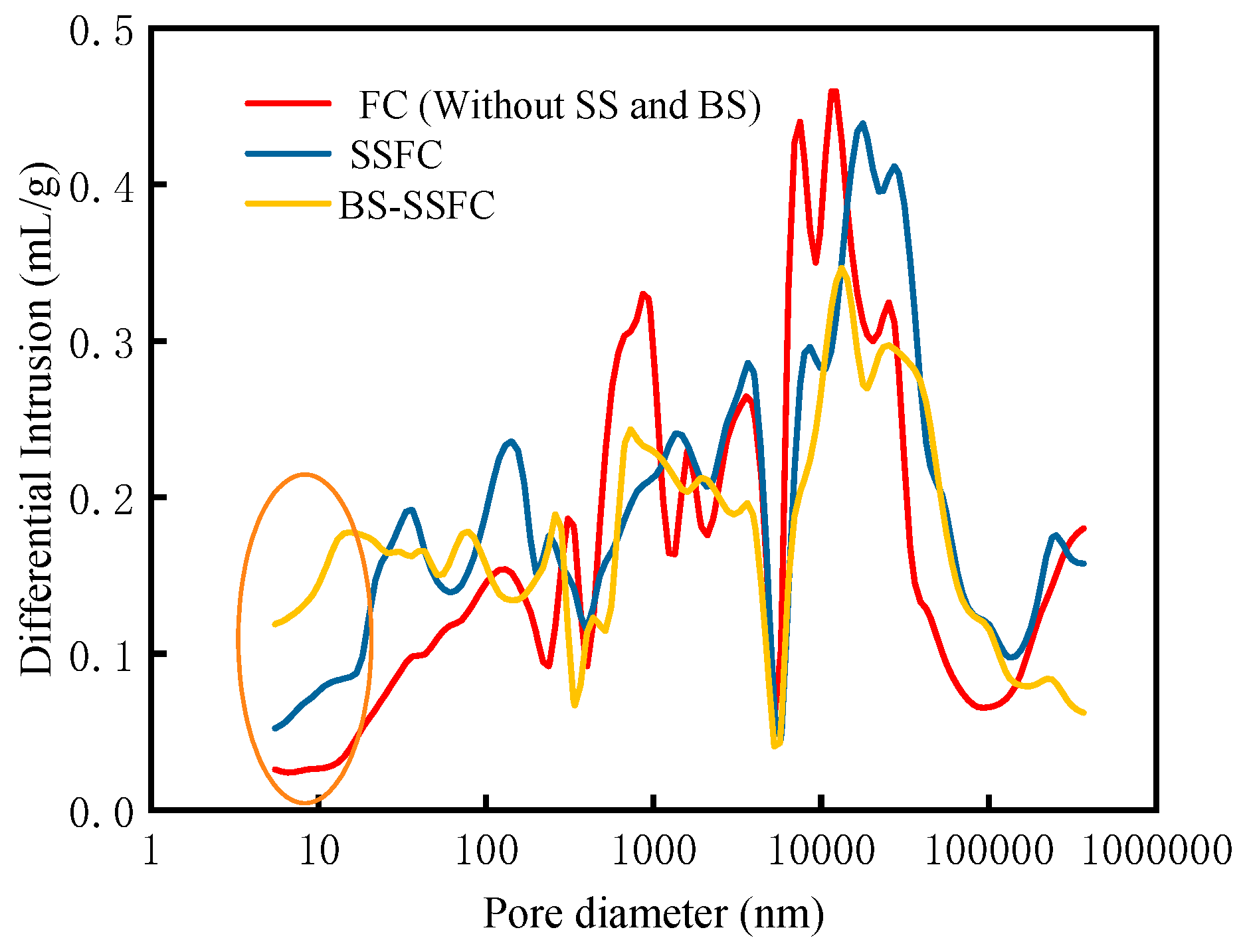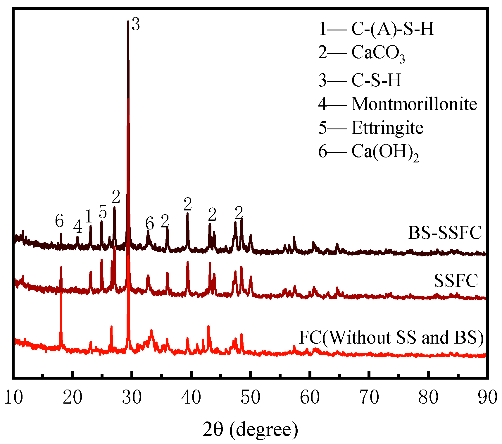 - Incorporating BS and SS into FC can effectively improve its resistance to chemical erosion: as the number of cycles increases, SS can continuously participate in hydration reactions, thereby enhancing the material’s strength; the addition of BS improves the plasticity of the material, enabling it to maintain a high strength retention rate after wet–dry cycles.