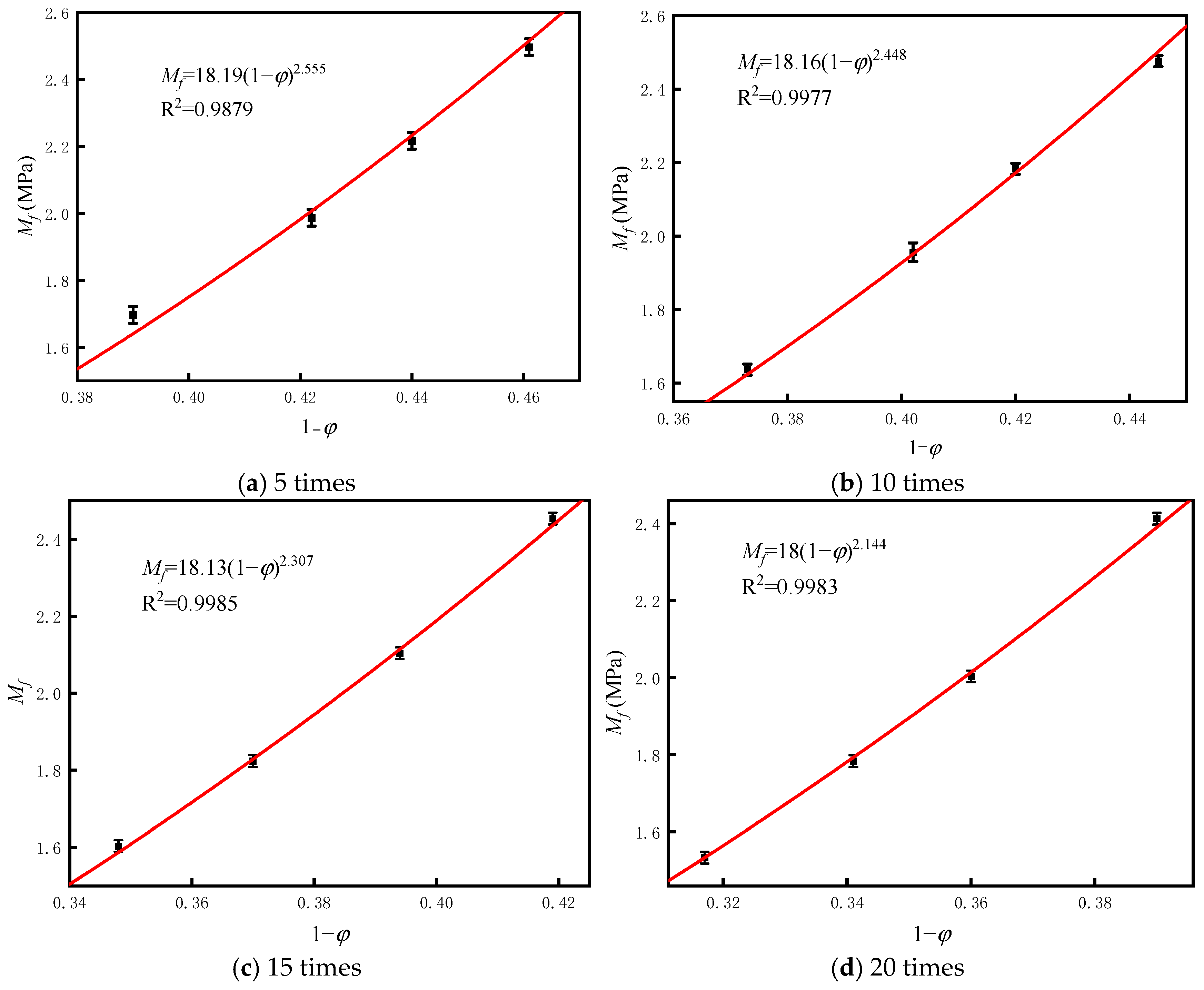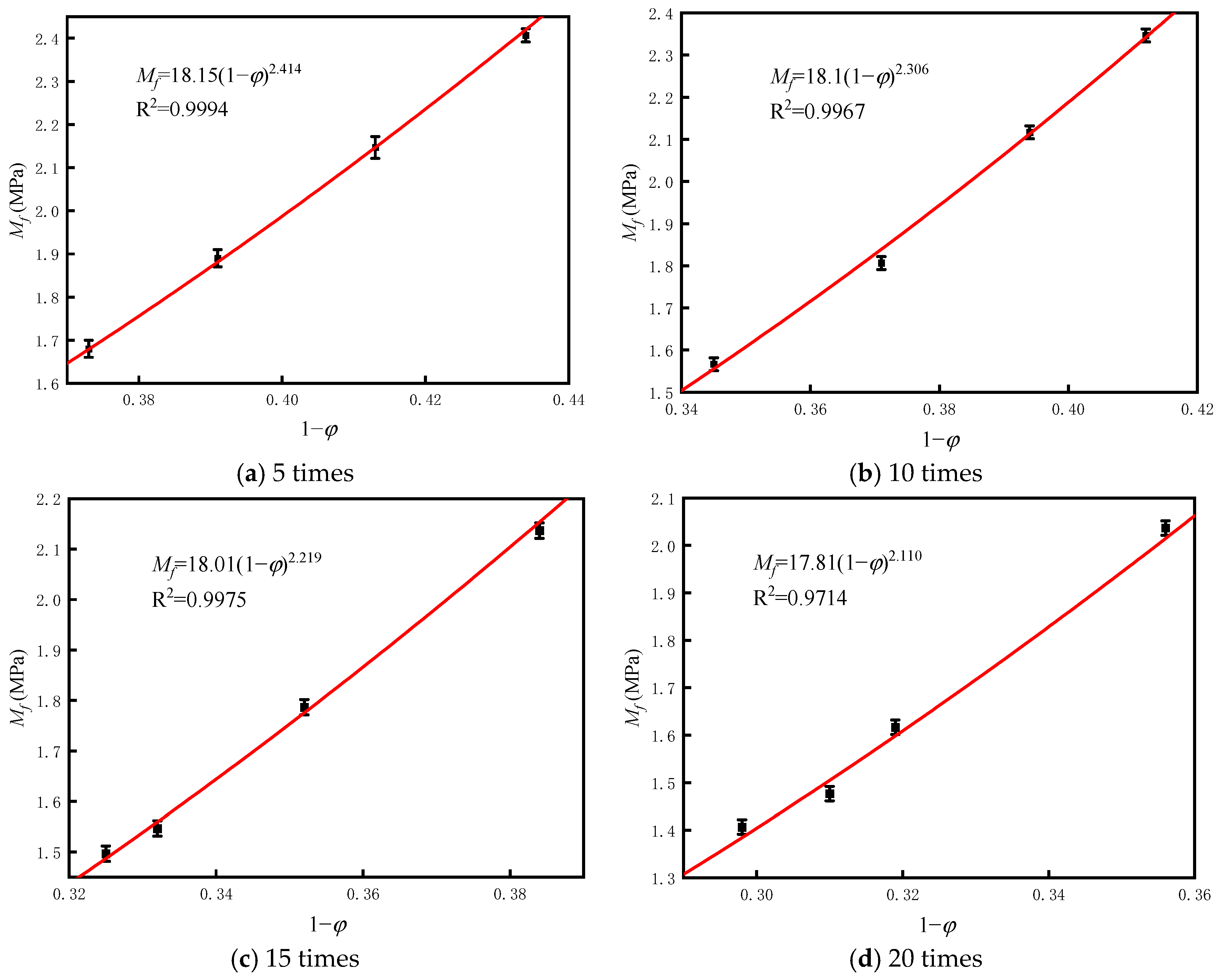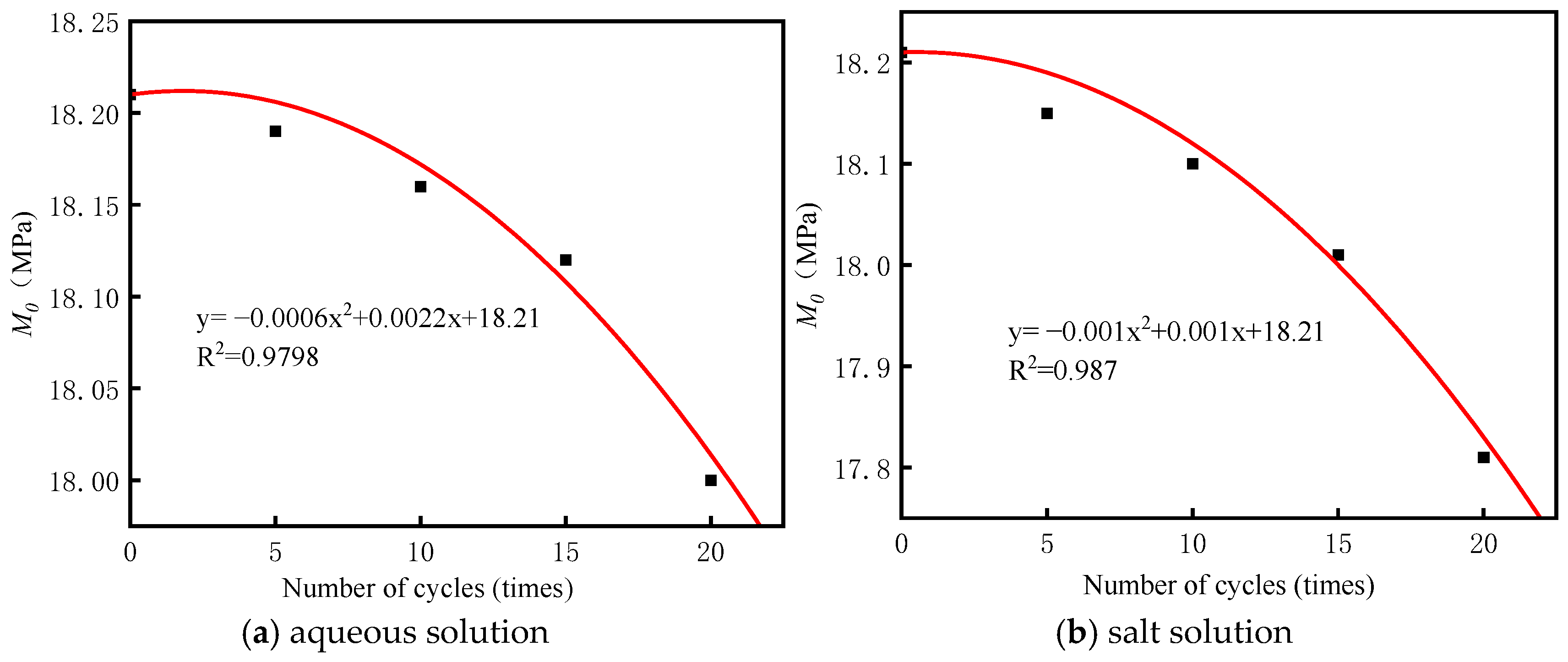 Solution | Number of Cycles/Times | M0/MPa | Fractal Dimension (D) | b | Mf-φ Relation |
