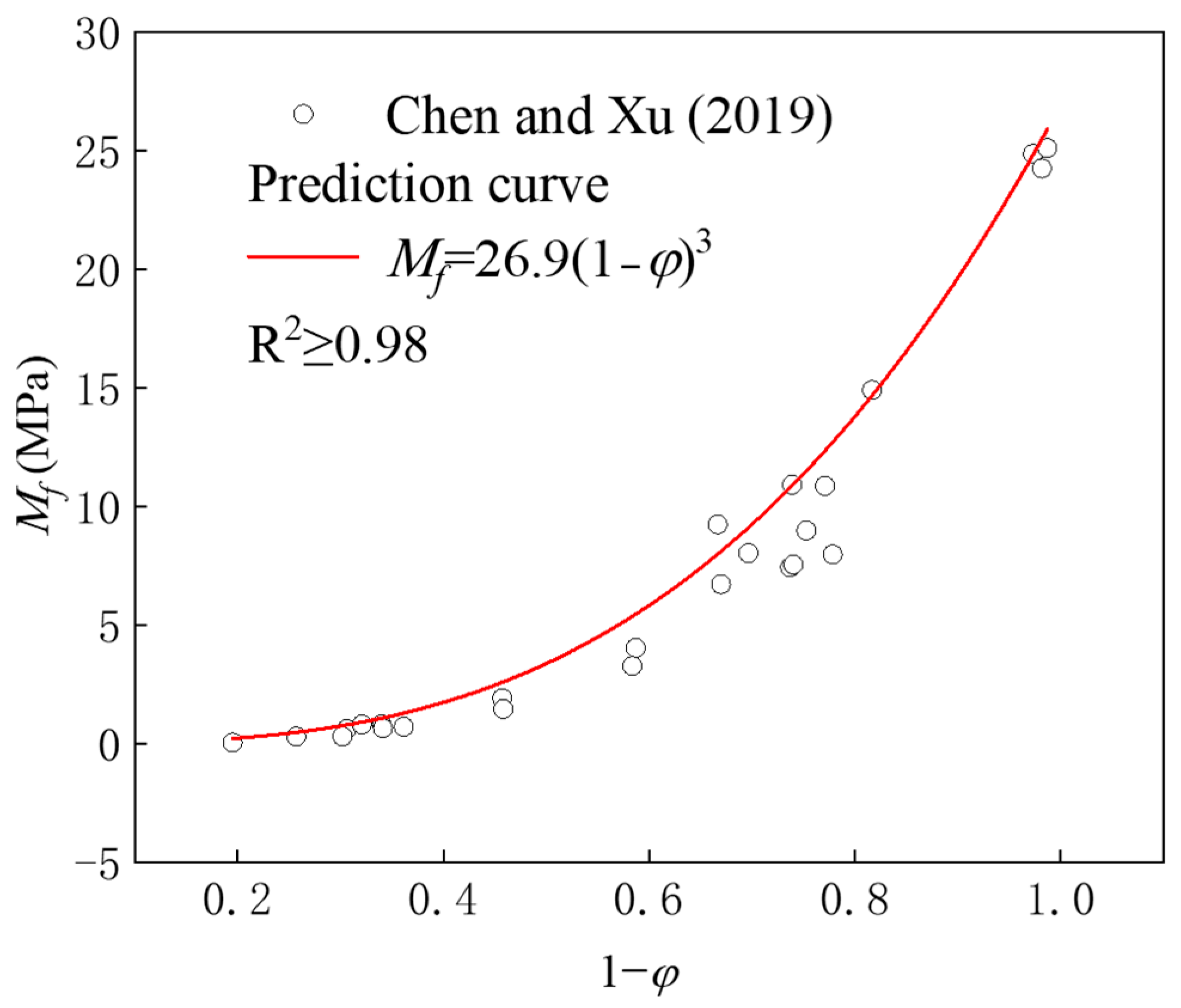 Salt solution | 5 | 18.15 | 2.757 | 2.414 | Mf = 18.15(1 − φ)2.414 |