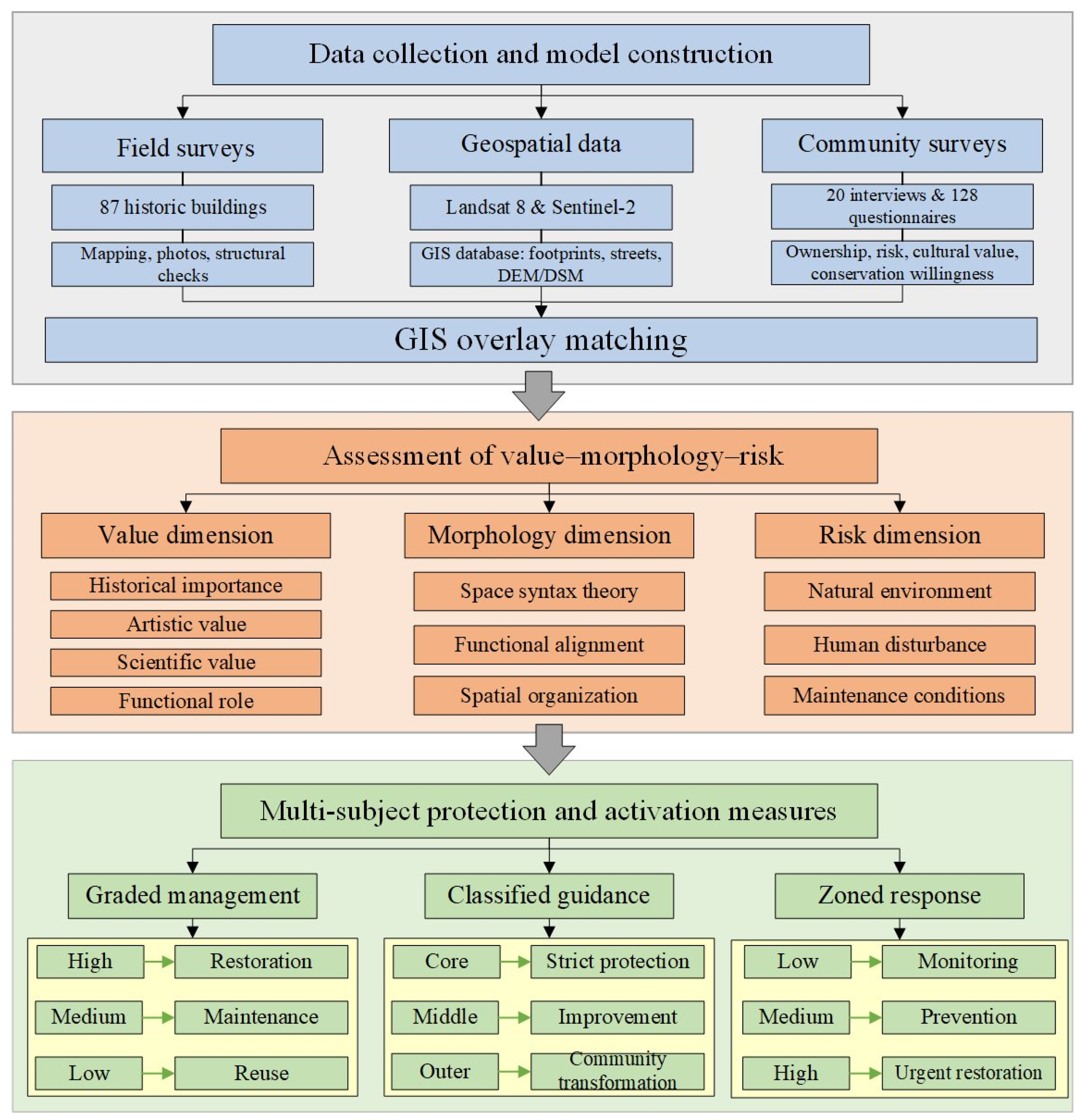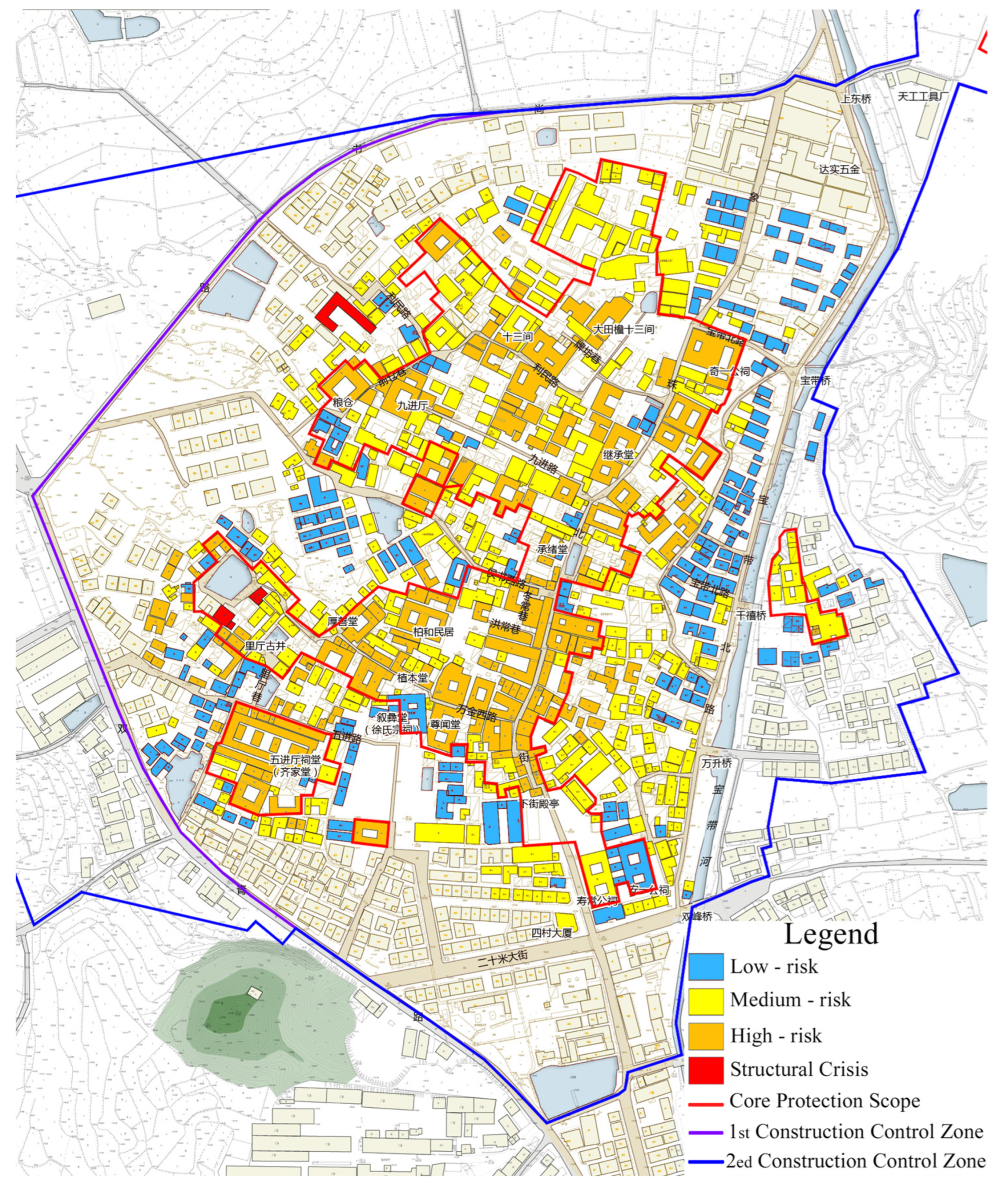 Wang, J.; Wang, W.; Lu, C.; Guo, Z. Multidimensional Assessment and Planning Strategies for Historic Building Conservation in Small Historic Towns: A Case Study of Xiangzhu, China. Buildings 2025, 15, 3553. https://doi.org/10.3390/buildings15193553
