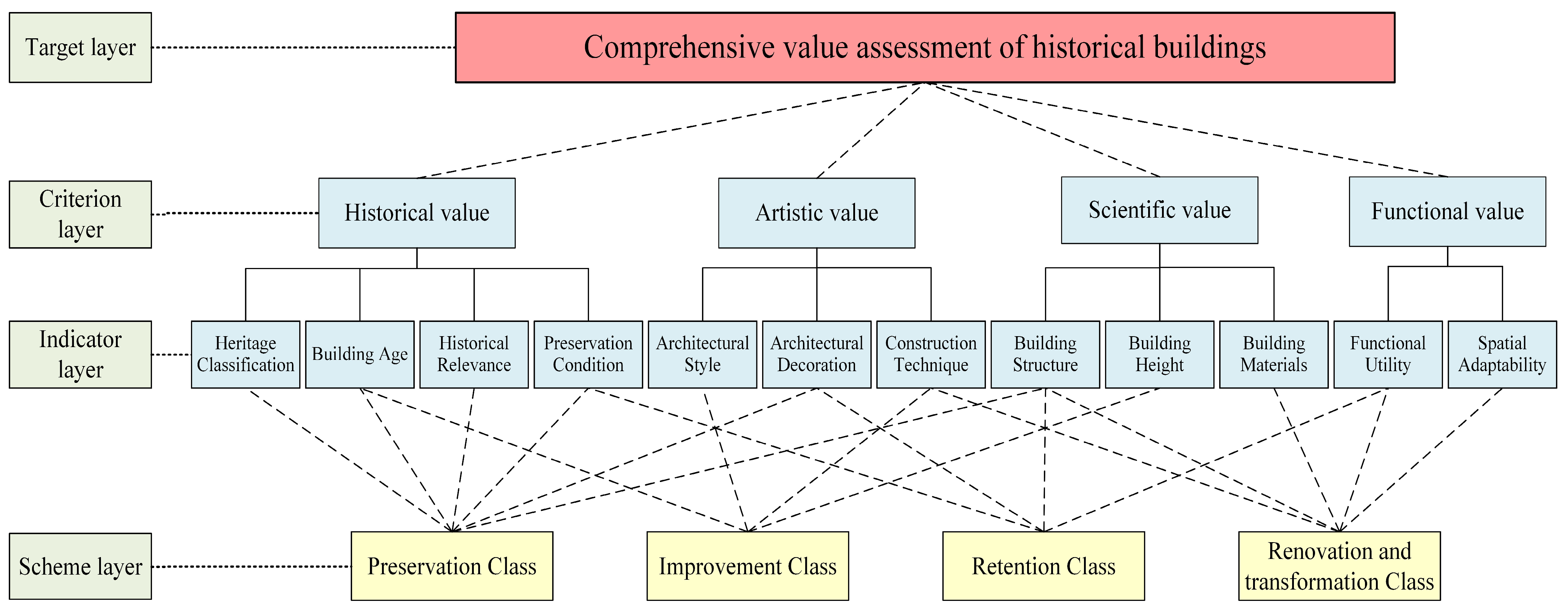 - Yau, Y. Multi-criteria decision making for urban built heritage conservation: Application of the analytic hierarchy process. J. Build. Apprais. 2009, 4, 191–205. [Google Scholar] [CrossRef]