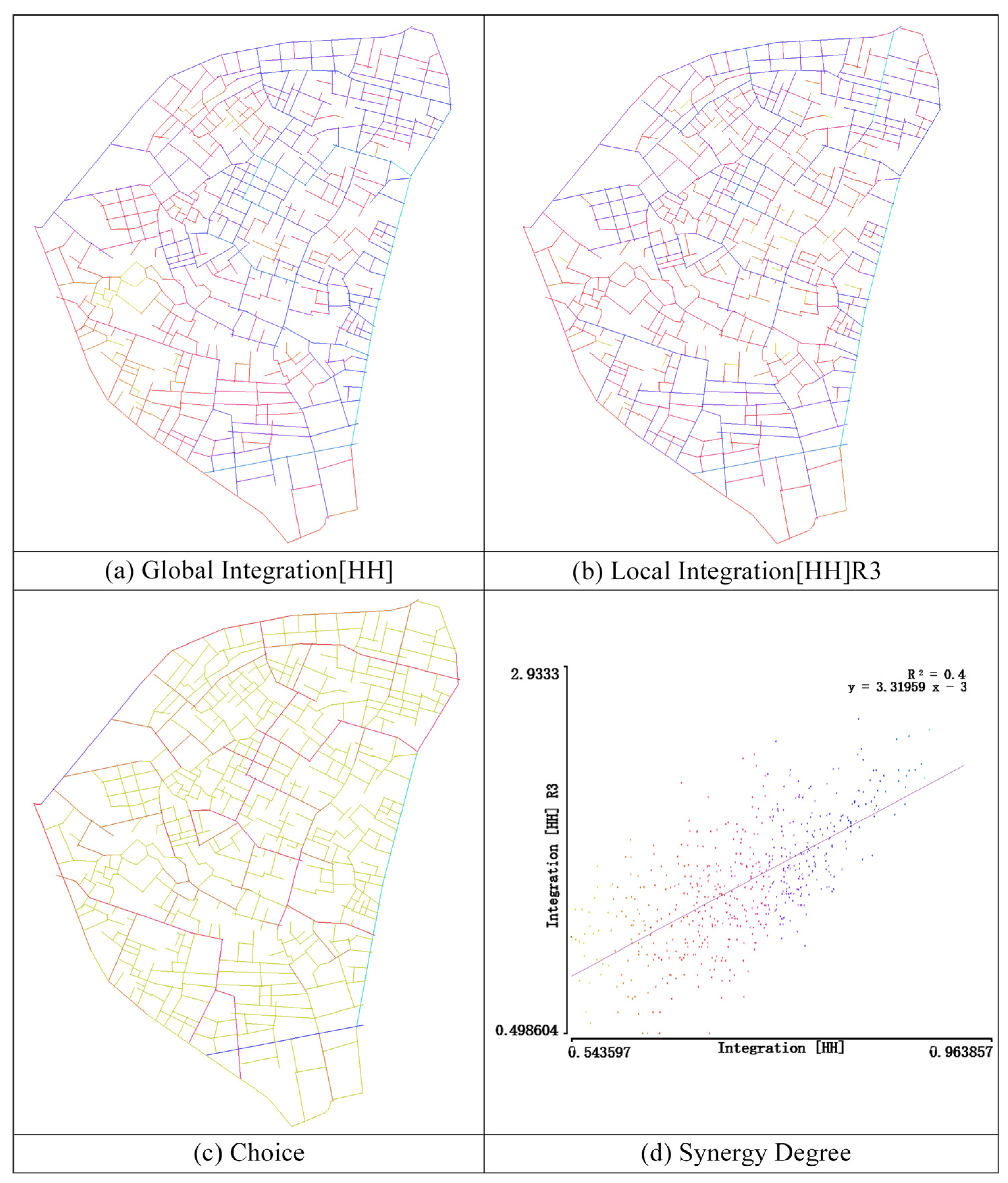 - Fu, J.M.; Tang, Y.F.; Zeng, Y.K.; Feng, L.Y.; Wu, Z.G. Sustainable historic districts: Vitality analysis and optimization based on space syntax. Buildings 2025, 15, 657. [Google Scholar] [CrossRef]