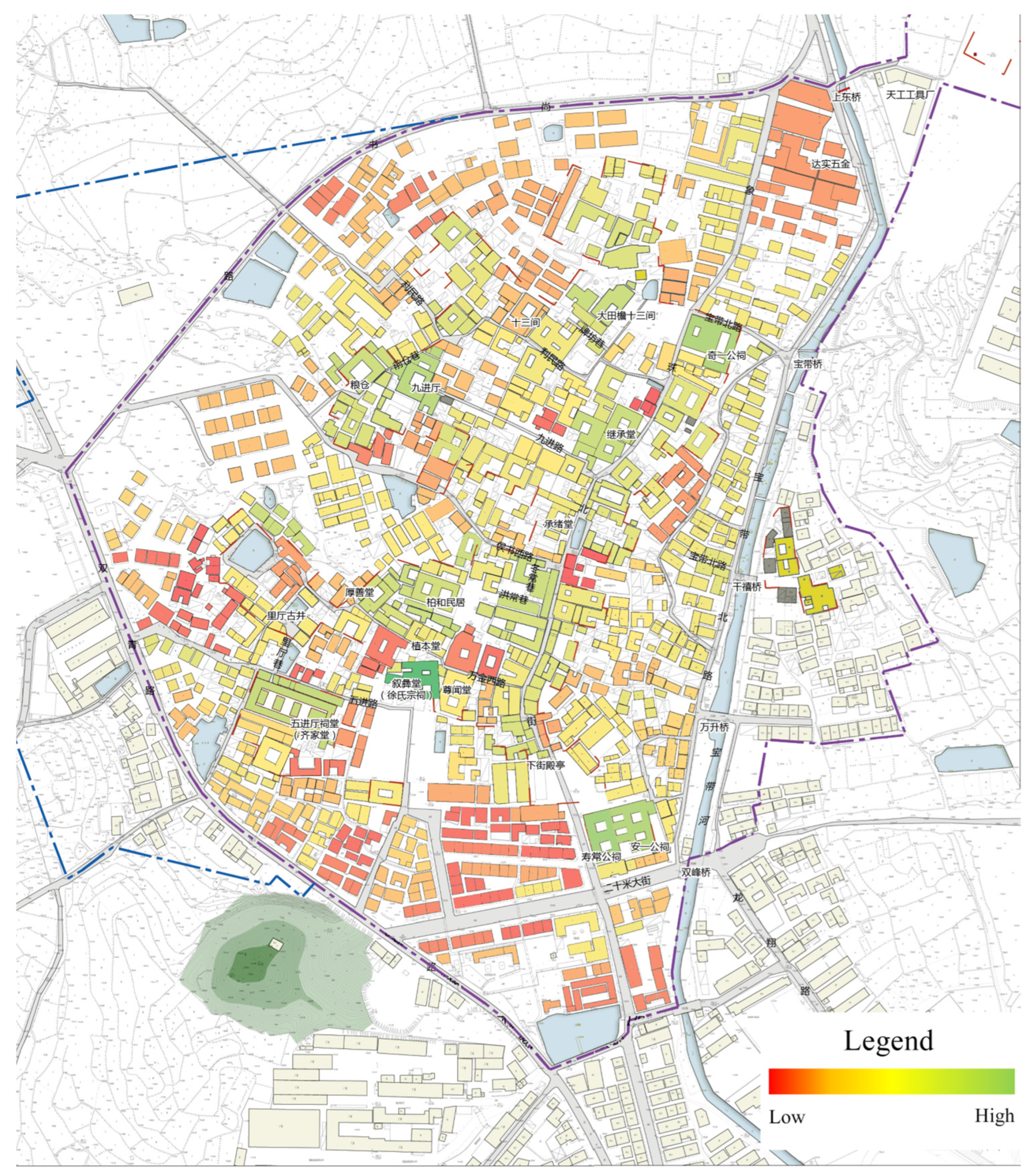 - Protection Class (V > 2.65): Core buildings of outstanding value, requiring strict protection and systematic restoration.