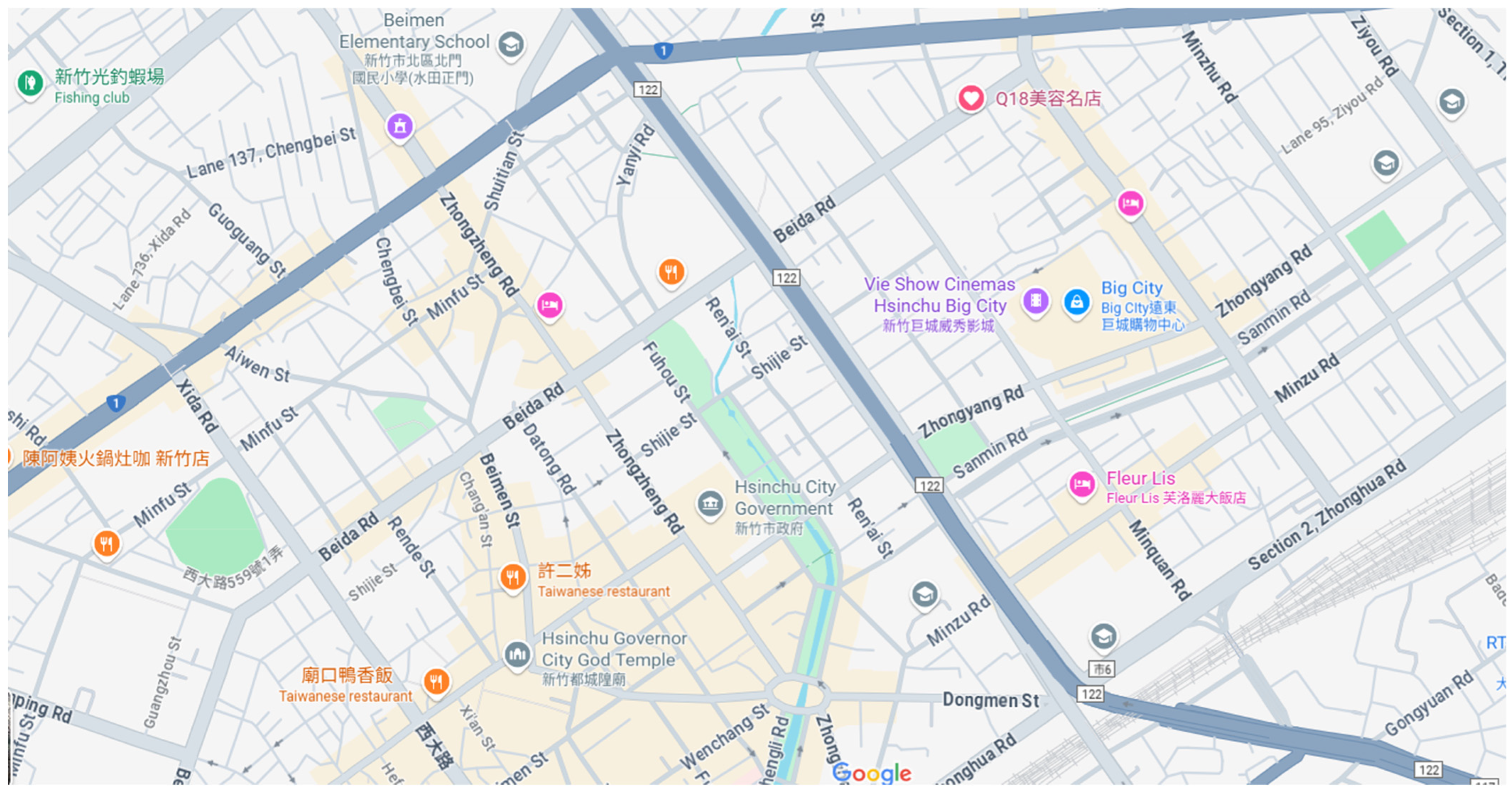 - Hsin chu City Map. Interactive map. Google Maps. Available online: https://www.google.com/maps (accessed on 1 August 2025).