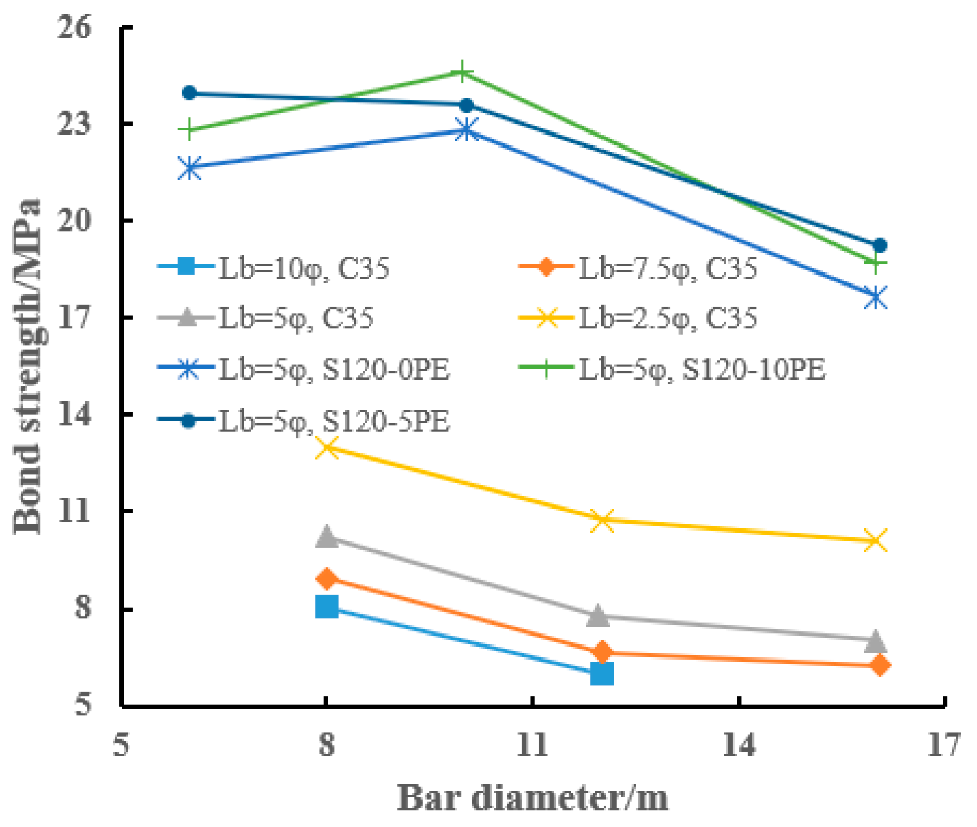 - Wang, J.Z.; Xiao, F.D.; Lai, Z.Y.; Yang, J.L.; Tian, S.Y. Bond of FRP bars with different surface characteristics to concrete. Structures 2024, 59, 105731. [Google Scholar] [CrossRef]
