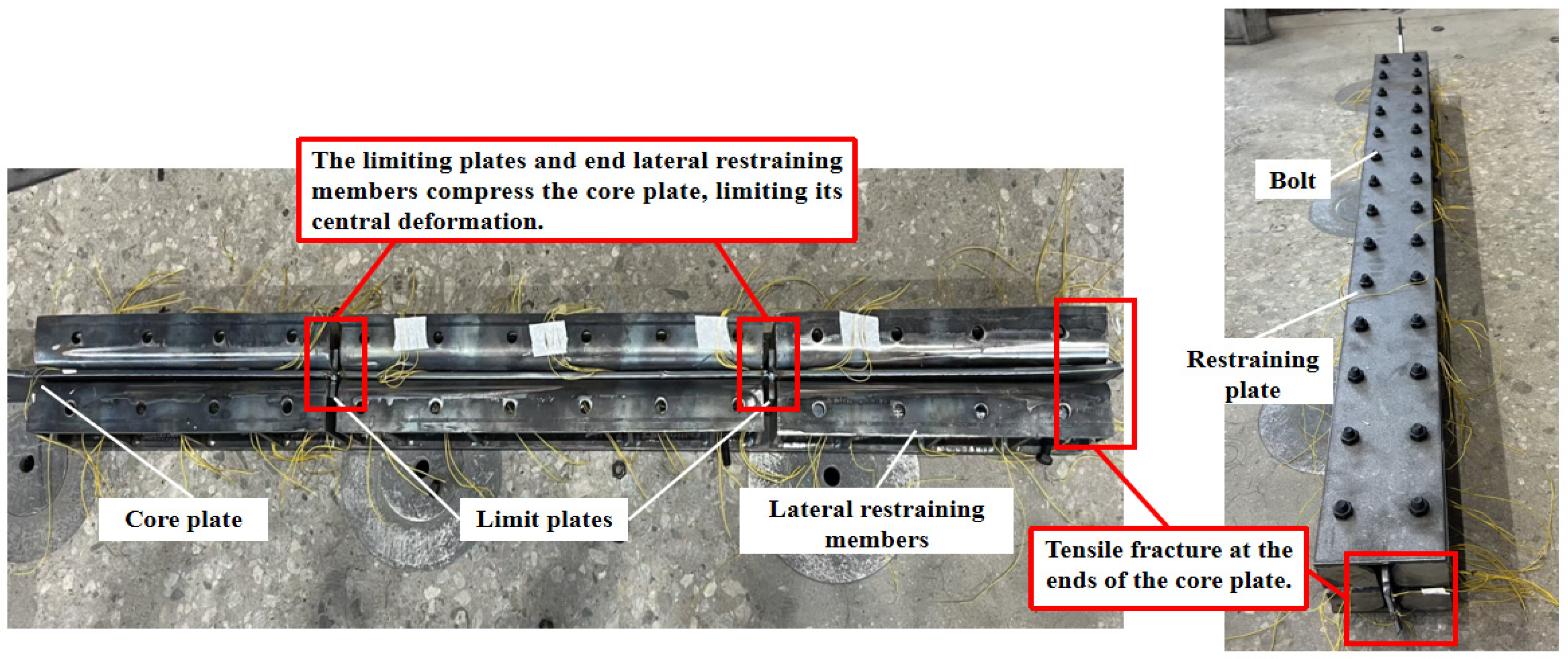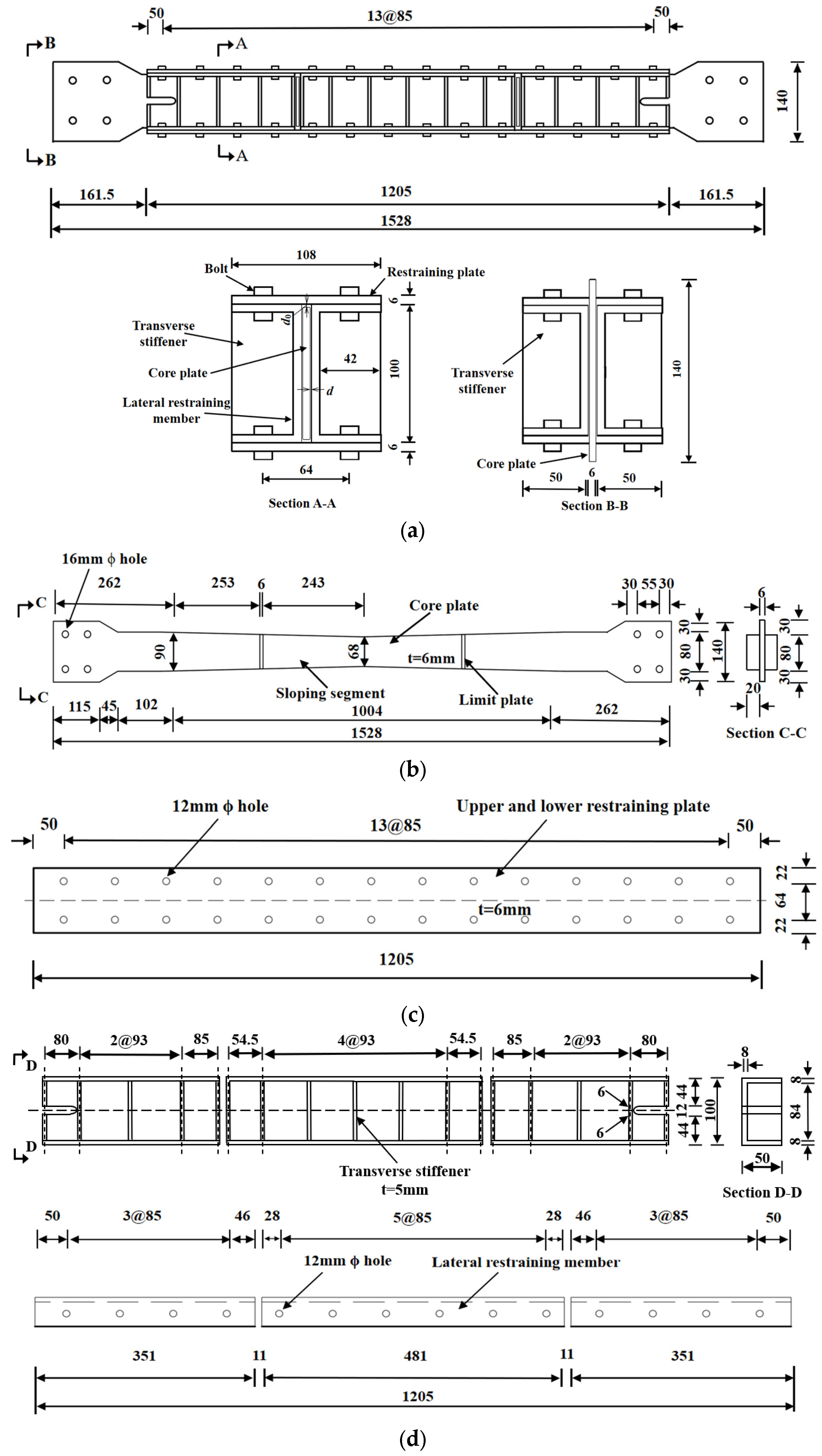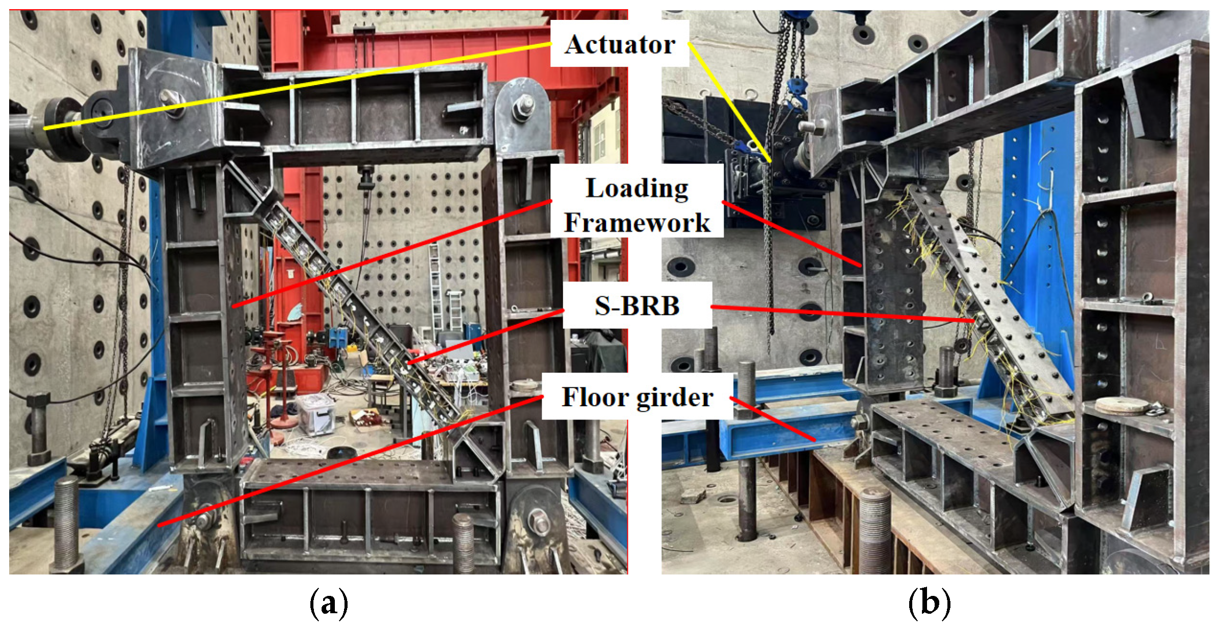 - Xu, S.; Li, L.; Wang, X. A Fully Bolted BRB and Its Preparation Method. CN113565228B, 14 February 2025. [Google Scholar]