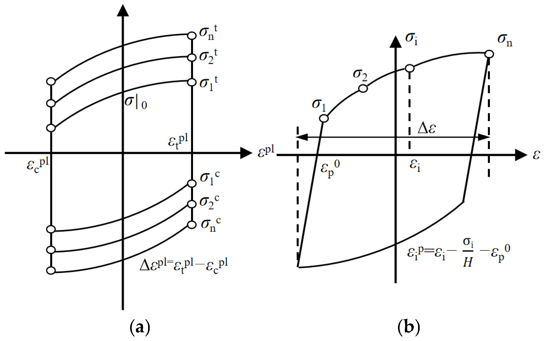 - Chaboche, J.L. Time-independent constitutive theories for cyclic plasticity. Int. J. Plast. 1986, 2, 149–188. [Google Scholar] [CrossRef]