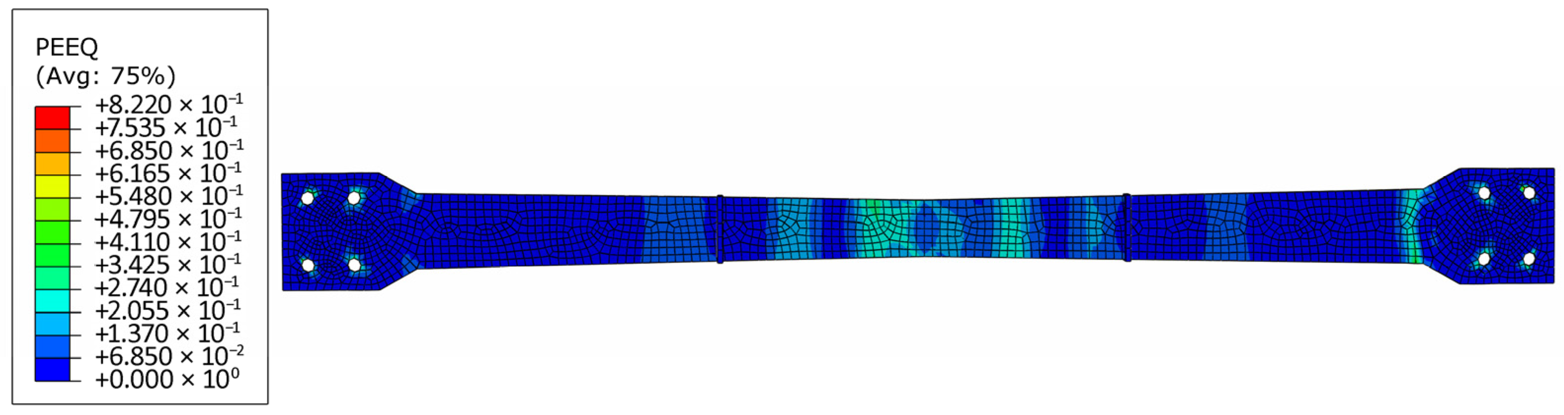 - Lia, P.; Li, H.; Zhang, T.; Chen, G.; He, Y.; Li, Z.; Xiong, G. Experimental investigation and numerical study of all-steel buckling-restrained braces. Structures 2025, 77, 109228. [Google Scholar] [CrossRef]
