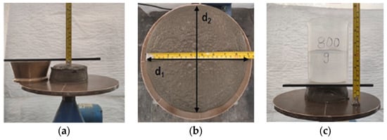 Printability testing methods: (a) mini-slump; (b) flowability; (c) buildability. Reprinted from Robayo-Salazar et al. (2024) [] under licence number 5993650351083.
