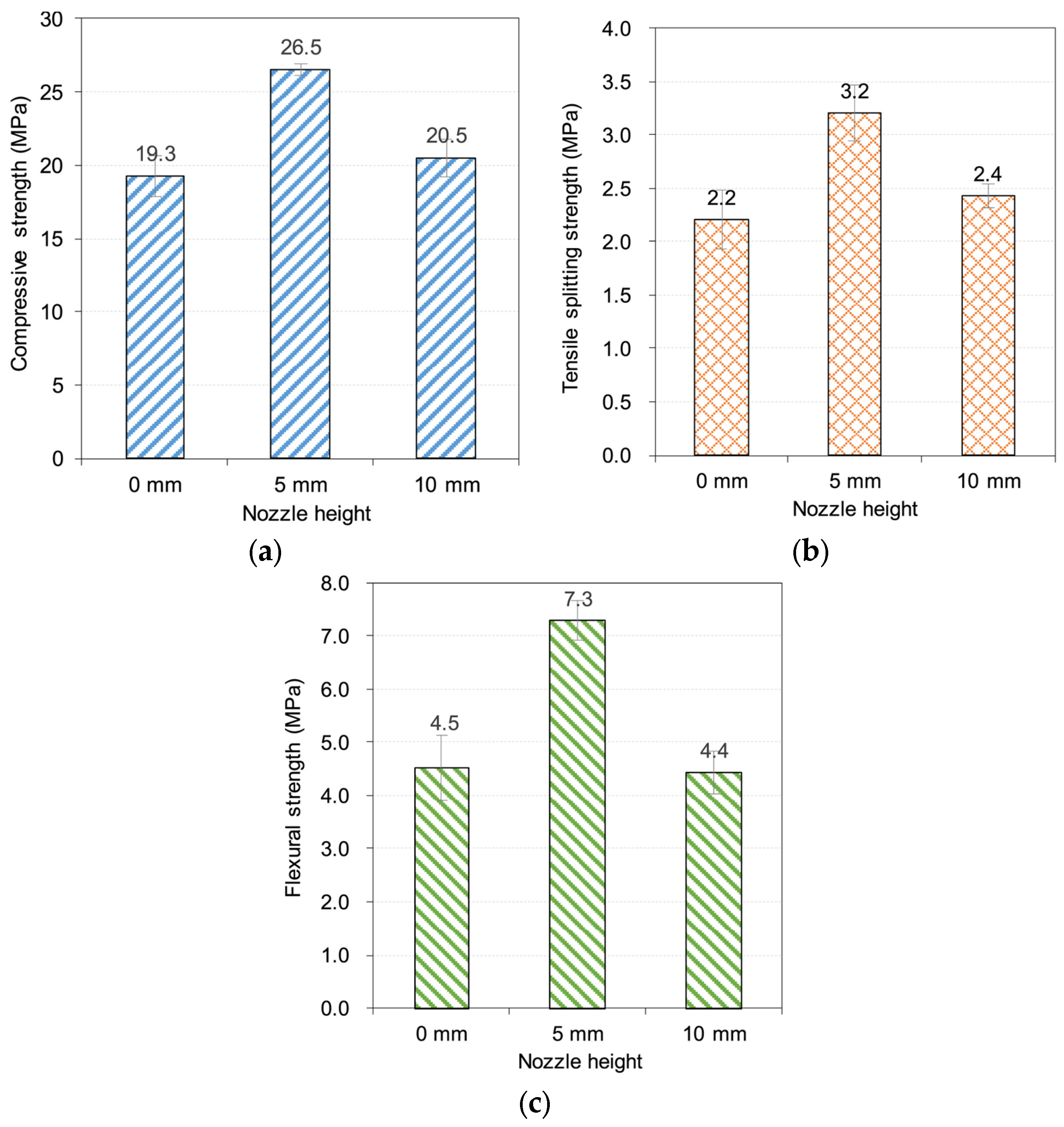 - Wolfs, R.J.M.; Bos, F.P.; Salet, T.A.M. Hardened Properties of 3D Printed Concrete: The Influence of Process Parameters on Interlayer Adhesion. Cem. Concr. Res. 2019, 119, 132–140. [Google Scholar] [CrossRef]