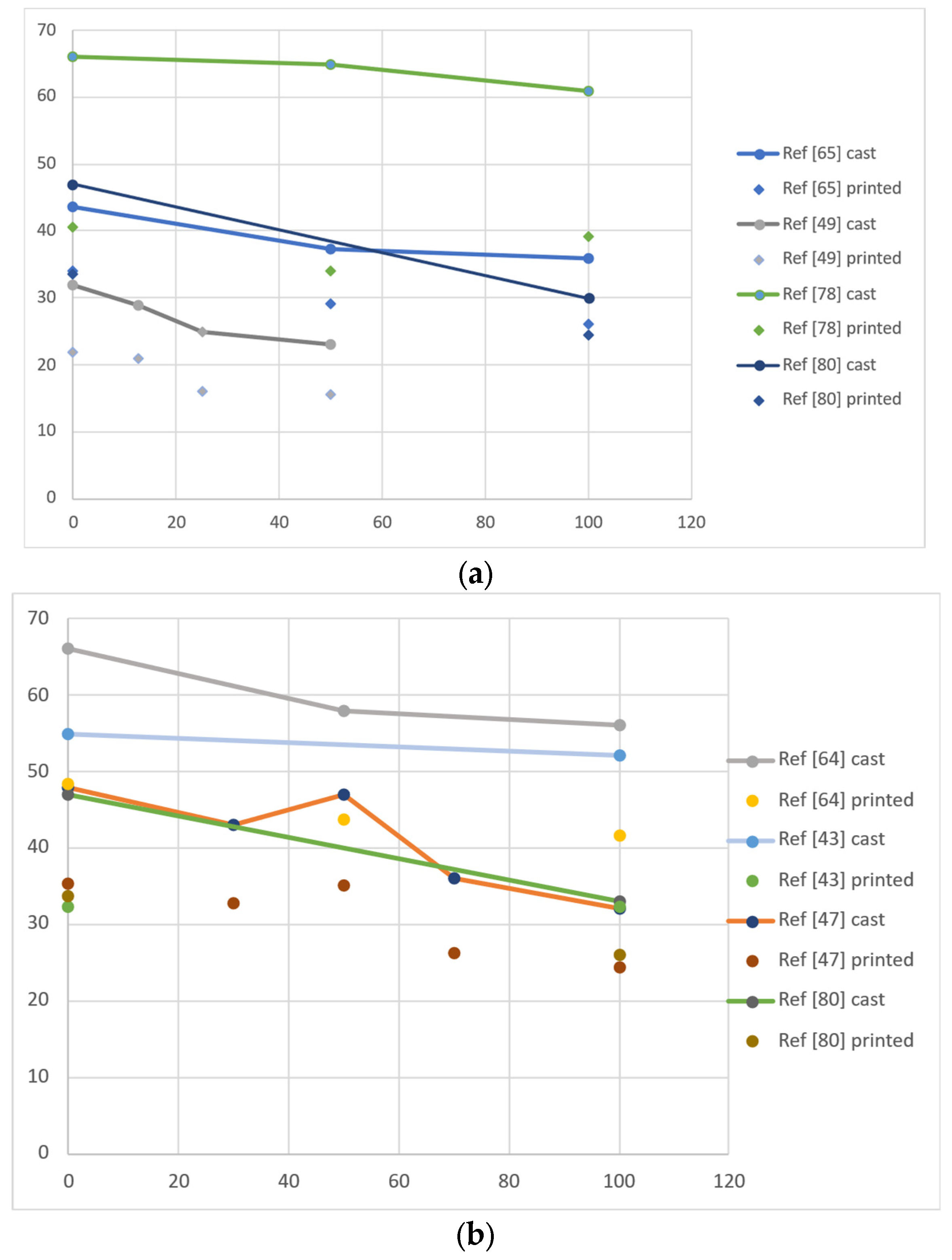 - Future studies can focus on presenting a more holistic image by assessment of the long-term durability parameters such as chloride ingress, carbonation, freeze–thaw, shrinkage, and creep. These parameters have been less focused on in the previous works analysed in this study (up to the cutoff date), but are important for presenting the scalability of the process.