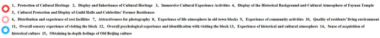 Through field pre-investigation and expert interviews, the questionnaire content was determined, and tourist satisfaction levels regarding various factors of interest were collected via the survey (Figure 4).
