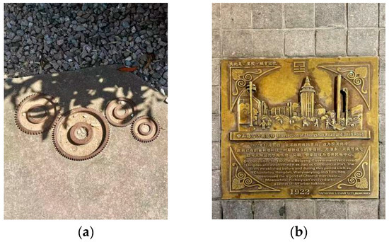 Ground Memory Pegs. Figure Source: Taken by the author. (a) Industrial Elements of Shaanxi Old Steel Factory. (b) Ground Building Information of Zhongshan Road in Qingdao.