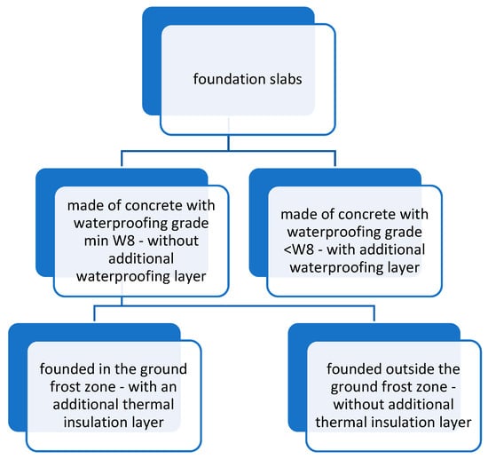 - Stage 1—Classification of foundation slab solutions based on soil and water conditions at the site.