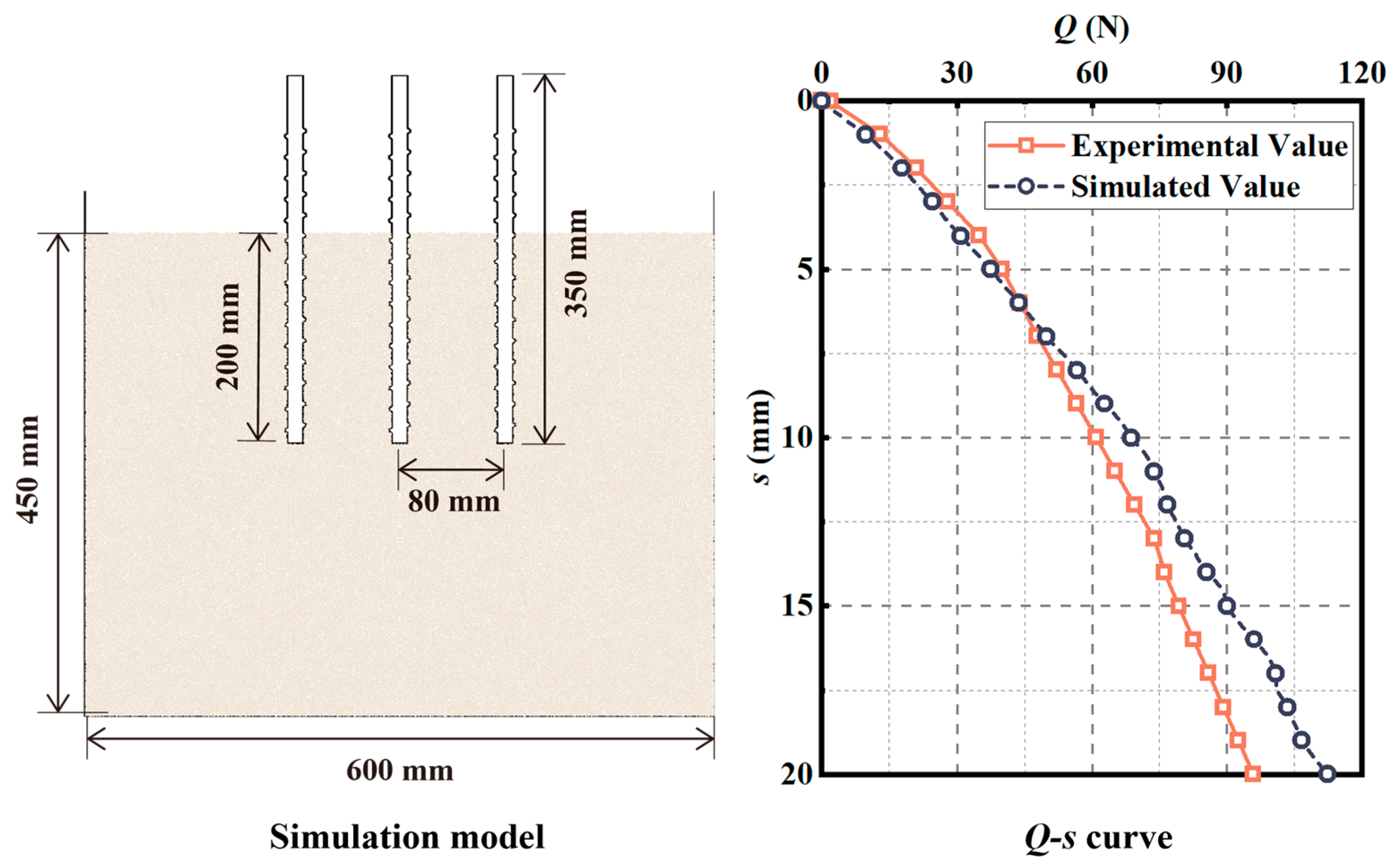 Chicago/Turabian StyleBai, Fenghao, Ye Lu, and Jiaxiang Yang. 2025. "Multi-Scale Investigation on Bearing Capacity and Load-Transfer Mechanism of Screw Pile Group via Model Tests and DEM Simulation" Buildings 15, no. 19: 3581. https://doi.org/10.3390/buildings15193581
