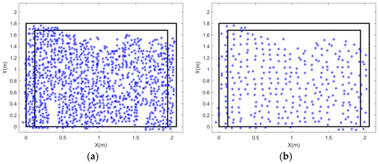 (a) Before MAD filtering (1192 points) and (b) after MAD filtering (927 points).