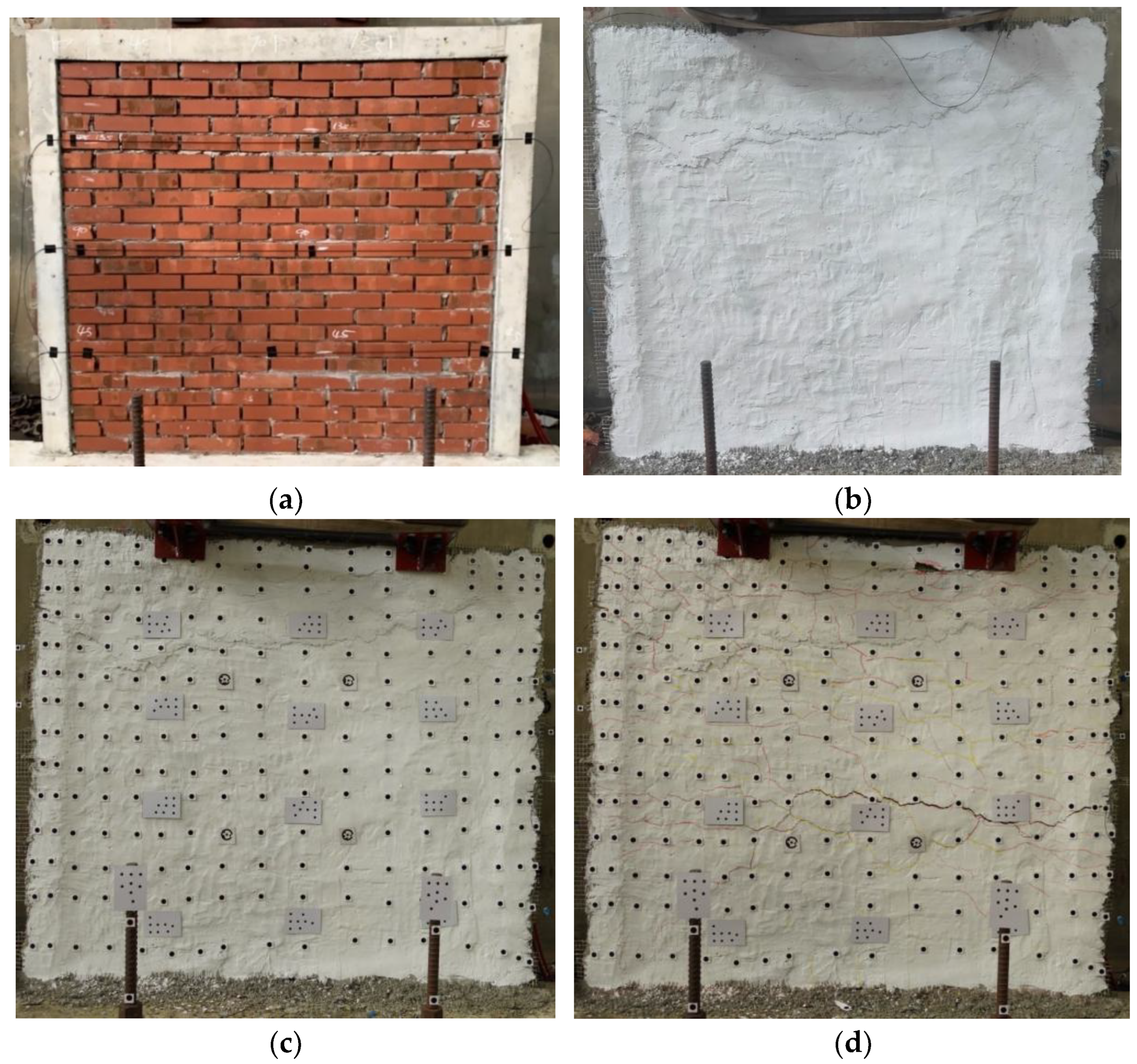 - Bolhassani, M.; Rajaram, S.; Hamid, A.A.; Kontsos, A.; Bartoli, I. Damage detection of concrete masonry structures by enhancing deformation measurement using DIC. In Proceedings of the Nondestructive Characterization and Monitoring of Advanced Materials, Aerospace, and Civil Infrastructure 2016, Las Vegas, NV, USA, 22 April 2016; Volume 9804, pp. 227–240. [Google Scholar]