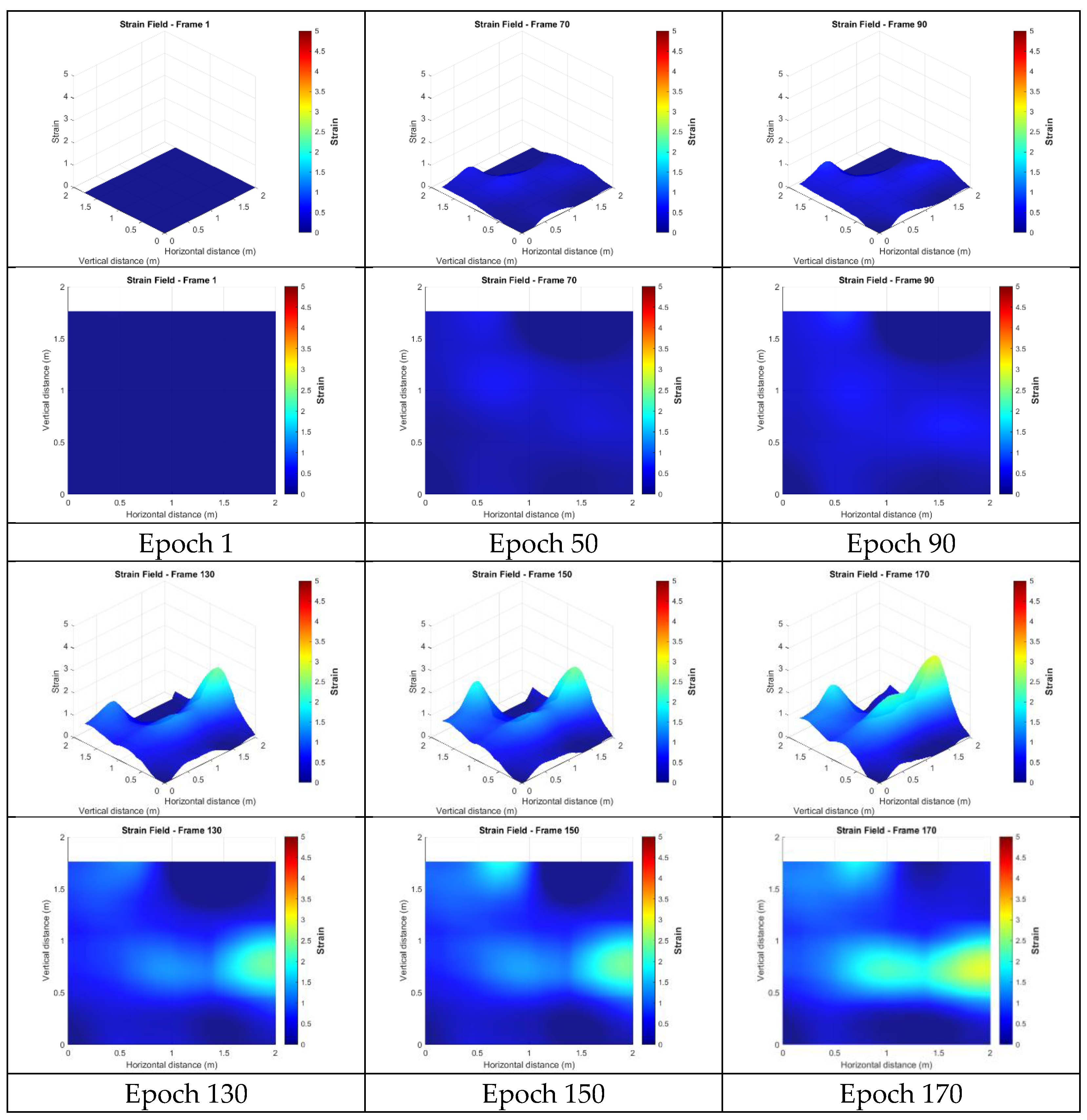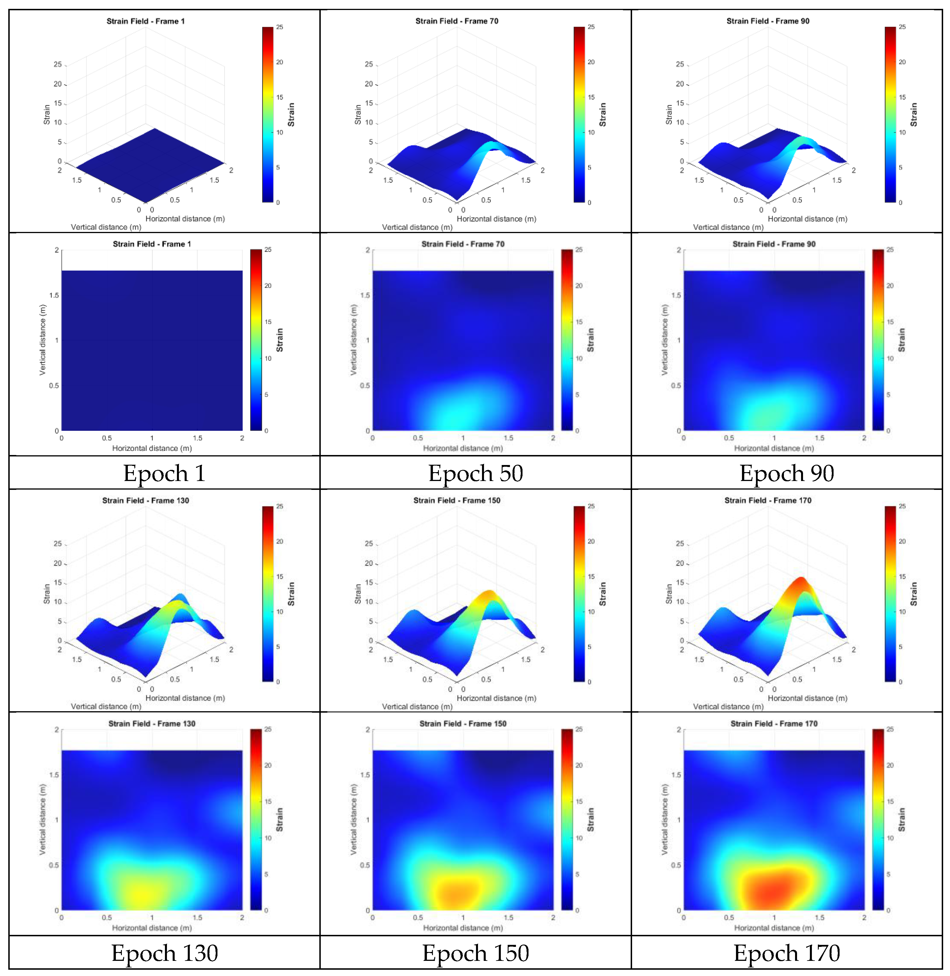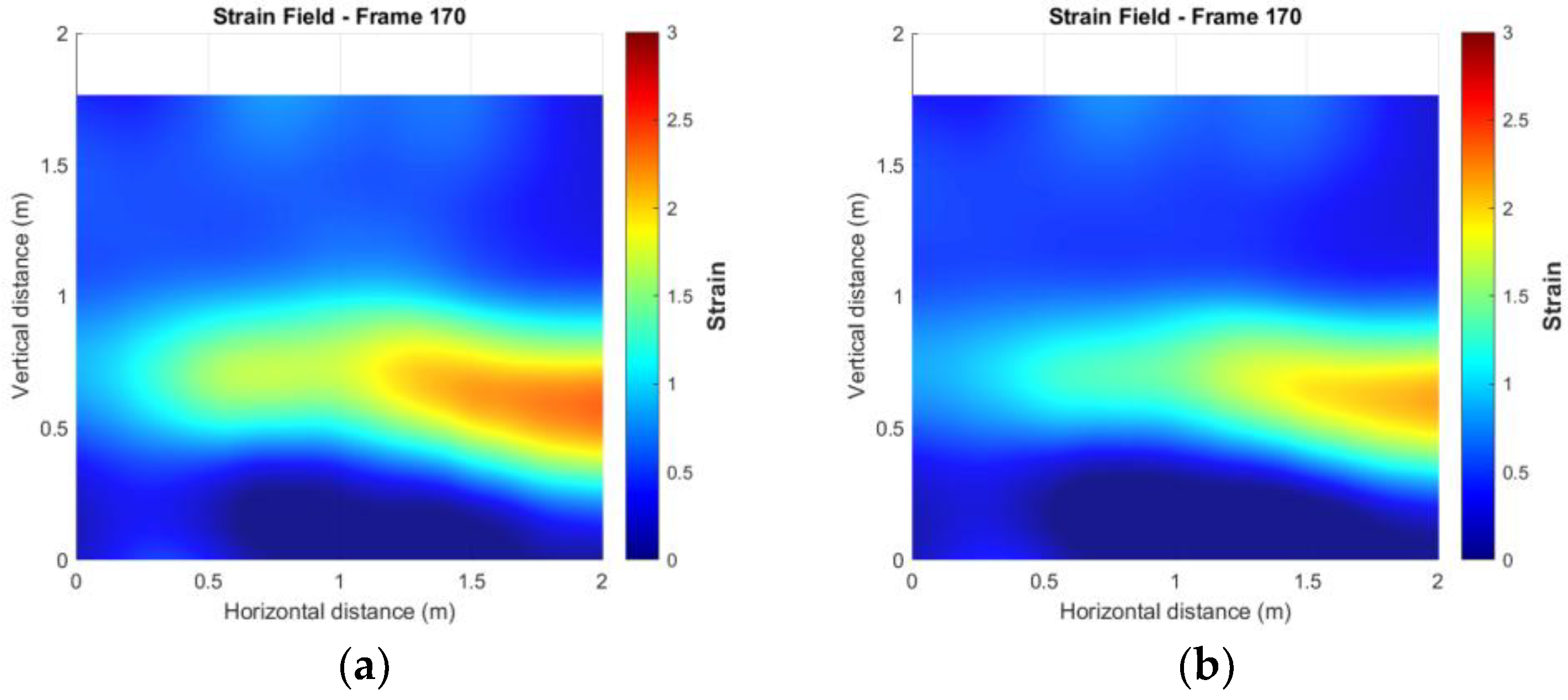 - Development and validation of filtering techniques: This study presents a spatio-temporal filtering framework that is specifically designed for markerless photogrammetric data. Instead of considering only spatial smoothing at a single time step, the proposed method also integrates temporal information, which effectively reduces random noise, enhances the precision of 3D deformation measurements and strain field estimations.