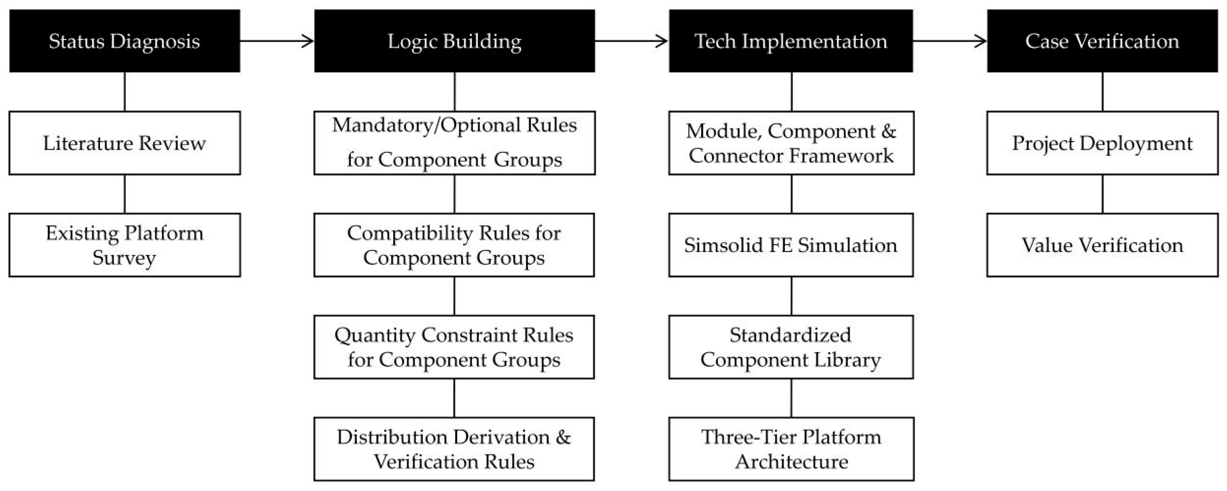 Limitations—Collaboration | Schemes not associated with manufacturing feasibility, conceptual models cannot directly guide production | Cumbersome operation processes, lack of module interface standards, and disconnection between design and production data, without considering component manufacturability | Weak connection with front-end design, lack of guidance in the scheme stage, insufficient full-process collaboration |