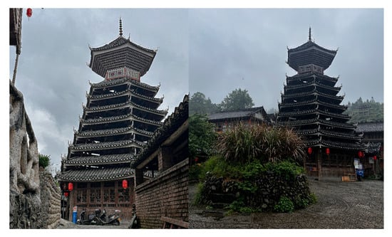 - Xue, L.; Pan, X.; Wang, X.; Zhou, H. Drum Towers Against Mountains and over Waters, Ancient Dong Villages in Southeastern Guizhou Province. In Traditional Chinese Villages; Springer: Singapore, 2021. [Google Scholar] [CrossRef]