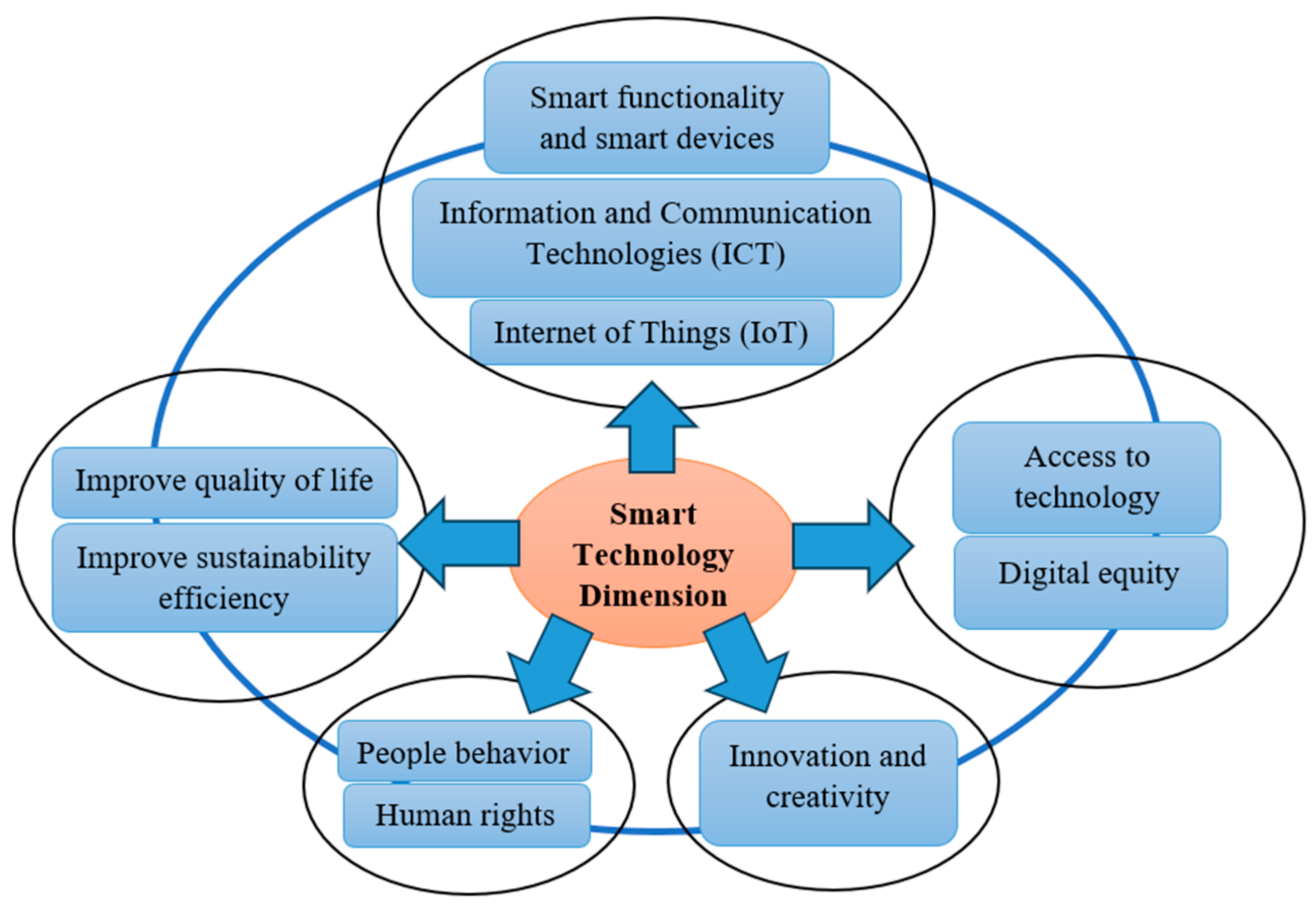 2.2. Smart Technology Dimension: The Information and Communication Technologies (ICTs) and the Internet of Things (IoTs)