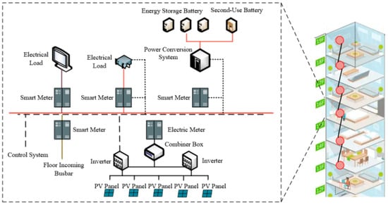 The building sector is a major contributor to global energy consumption and carbon emissions. Within this sector, the extensive stock of existing buildings represents a critical opportunity for energy-saving retrofits, which are vital for meeting carbon peak and carbon neutrality goals [1]. Photovoltaic–Energy Storage–Direct Current–Flexible (PEDF) technology has emerged as a promising integrated solution for building electrical systems. By combining photovoltaic (PV) generation, energy storage systems (ESSs), direct current (DC) distribution, and flexible load management, it can significantly enhance building energy efficiency, increase the self-consumption of renewable energy, and improve building–grid interactions [2,3].