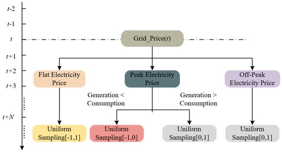 Figure 5 provides a schematic diagram of the ToU electricity price sampling method used in this paper, where the price for the current time period can be determined through appropriate sampling.