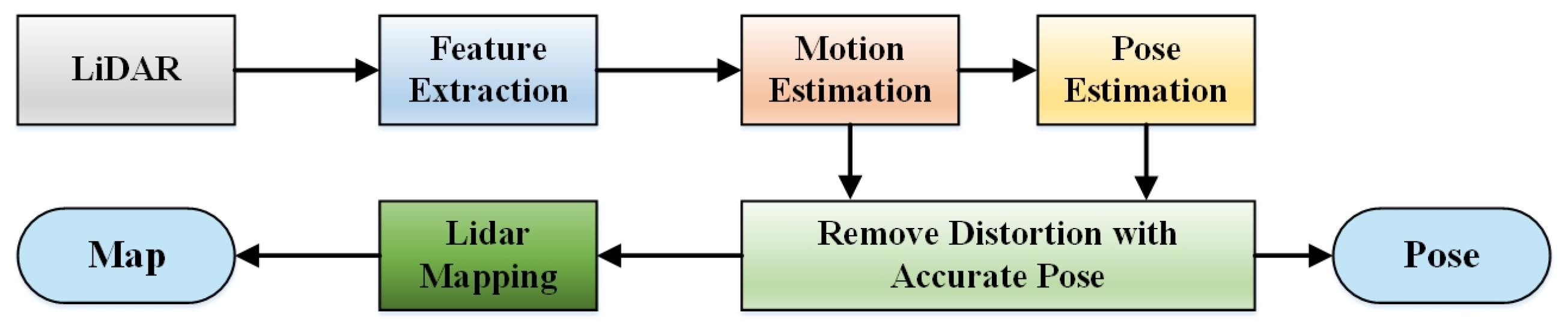 14. Zhang, J.; Singh, S. Low-Drift and Real-Time Lidar Odometry and Mapping. Auton. Robot. 2017, 41, 401–416. [Google Scholar] [CrossRef]