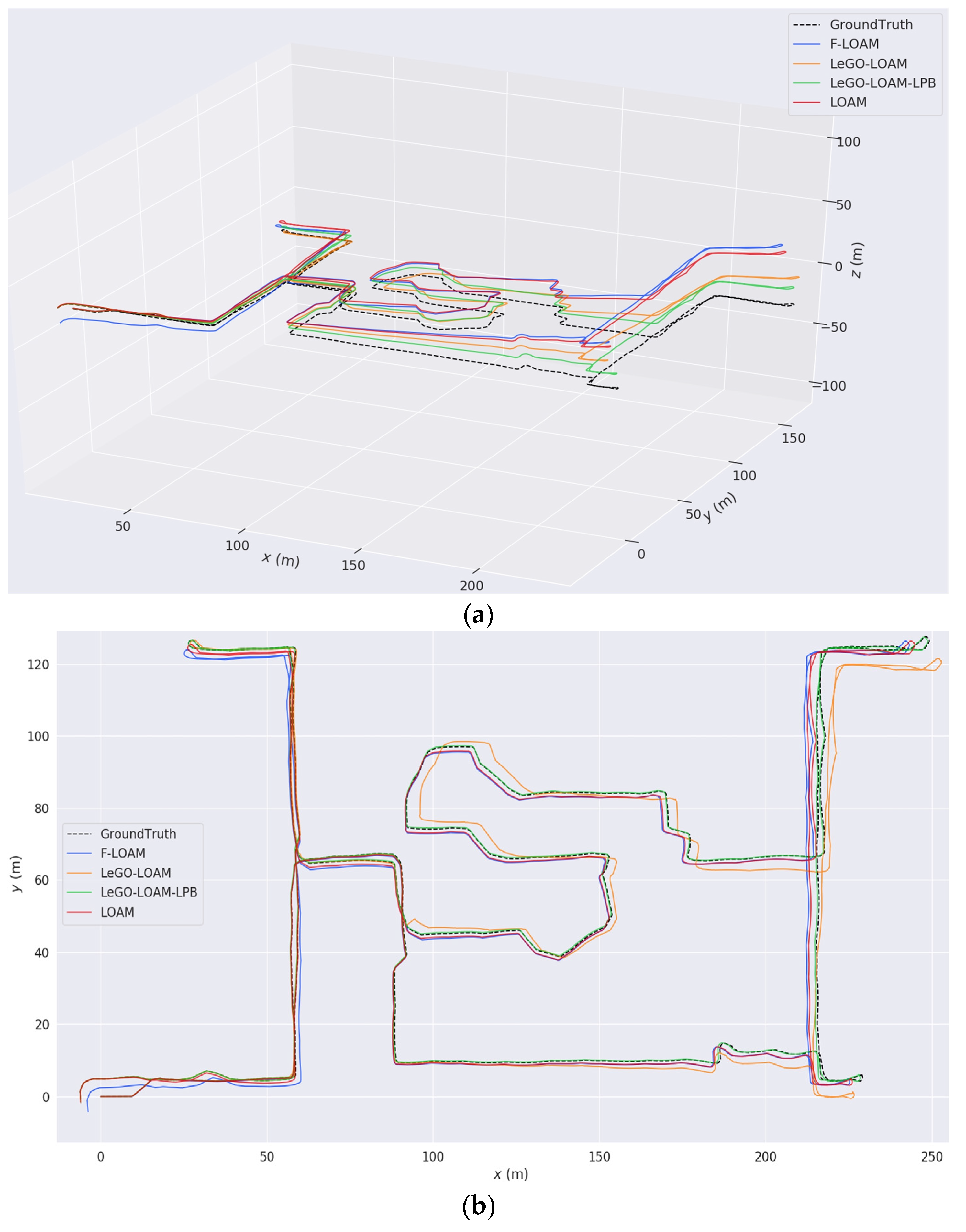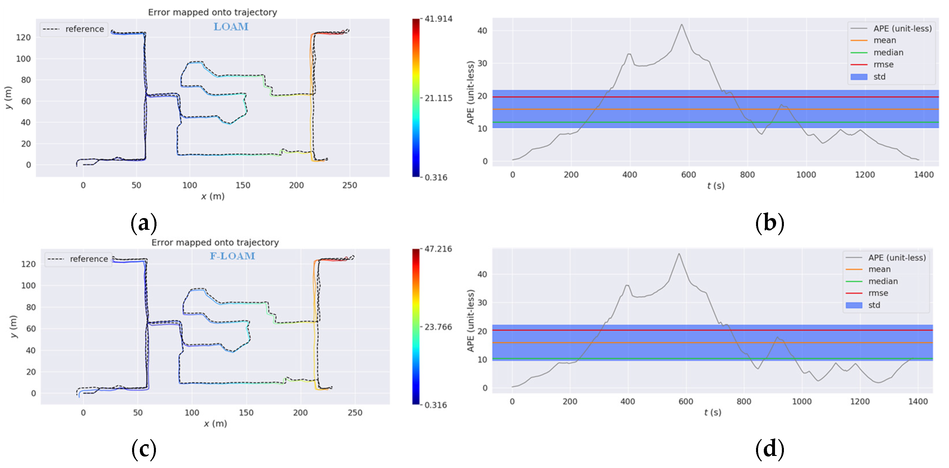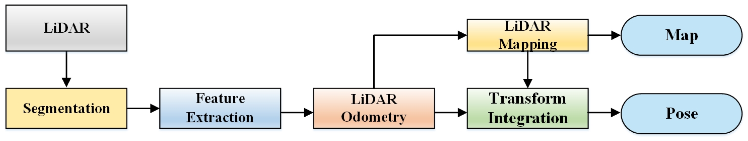 18. Wang, H.; Wang, C.; Chen, C.-L.; Xie, L. F-LOAM: Fast LiDAR Odometry and Mapping. In Proceedings of the 2021 IEEE/RSJ International Conference on Intelligent Robots and Systems (IROS), Prague, Czech Republic, 27 September–1 October 2021; pp. 4390–4396. [Google Scholar]