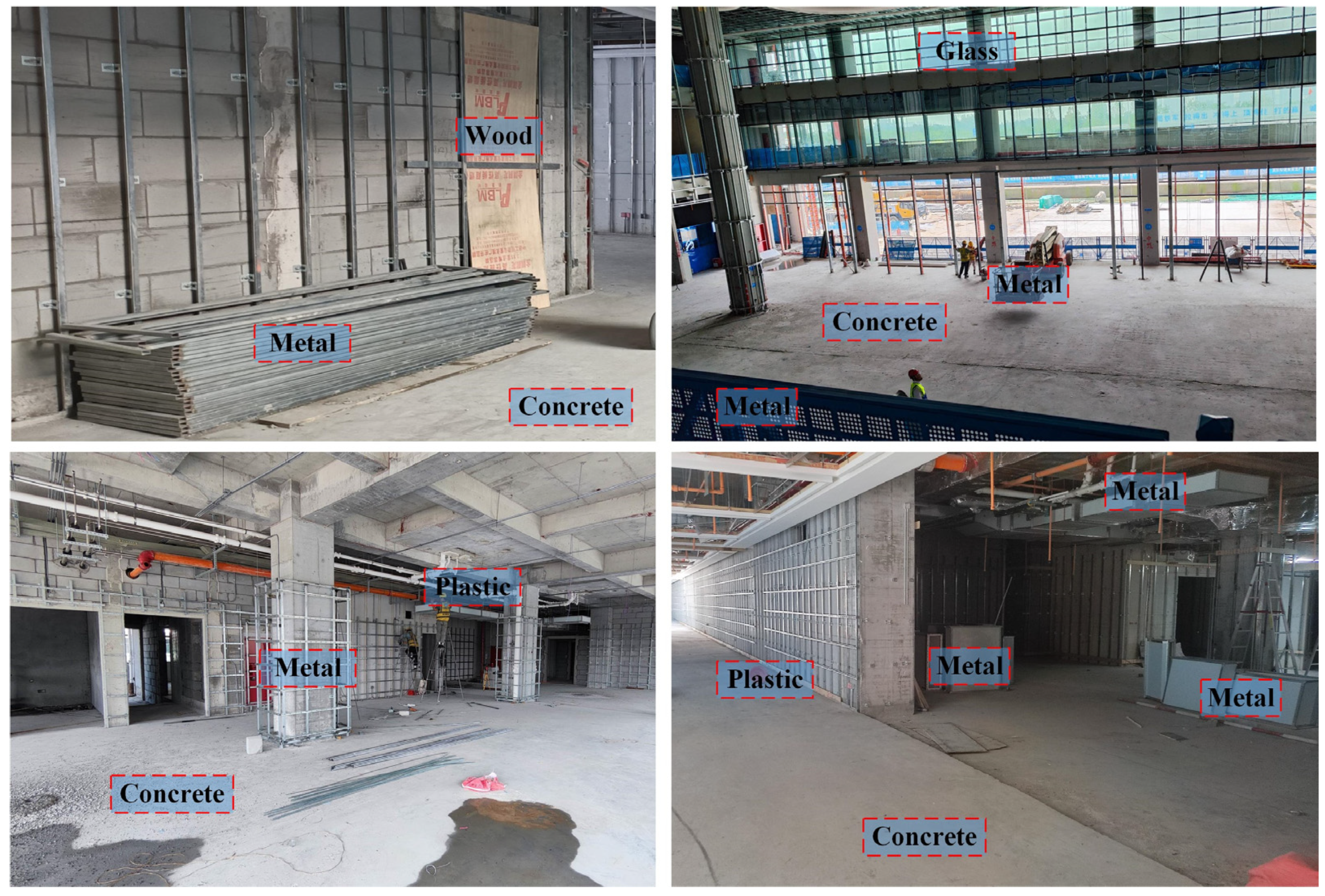 Figure 6. Installation construction sites of large-scale public buildings with diverse materials, including concrete, metal, glass, plastic, and wood.