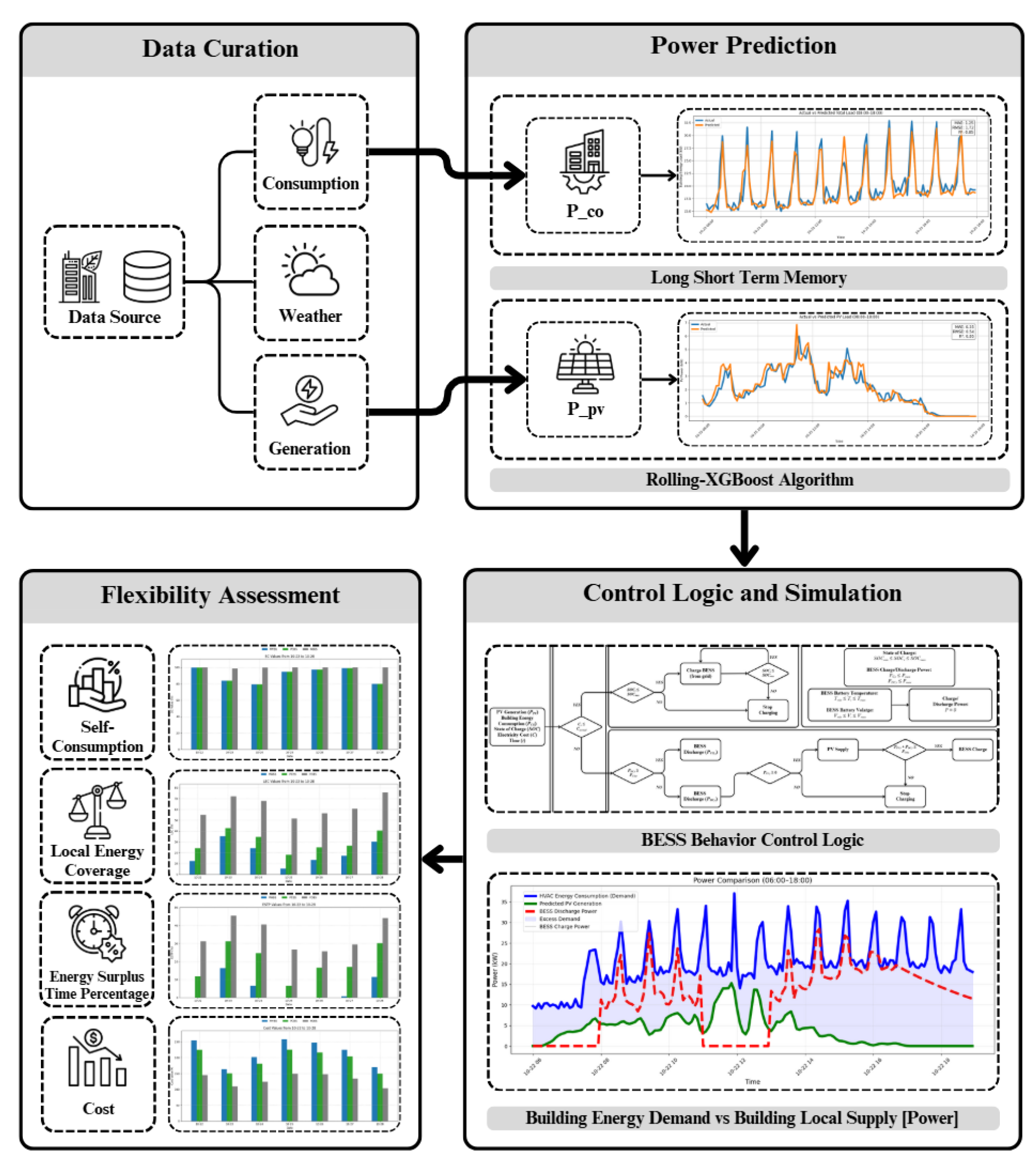 [2] | Physically consistent neural network combined with a prediction model | PV + BESS integration with dynamic pricing control | Net-zero energy office building in Singapore | PV and BESS improve energy flexibility; dynamic pricing aids control decisions |
