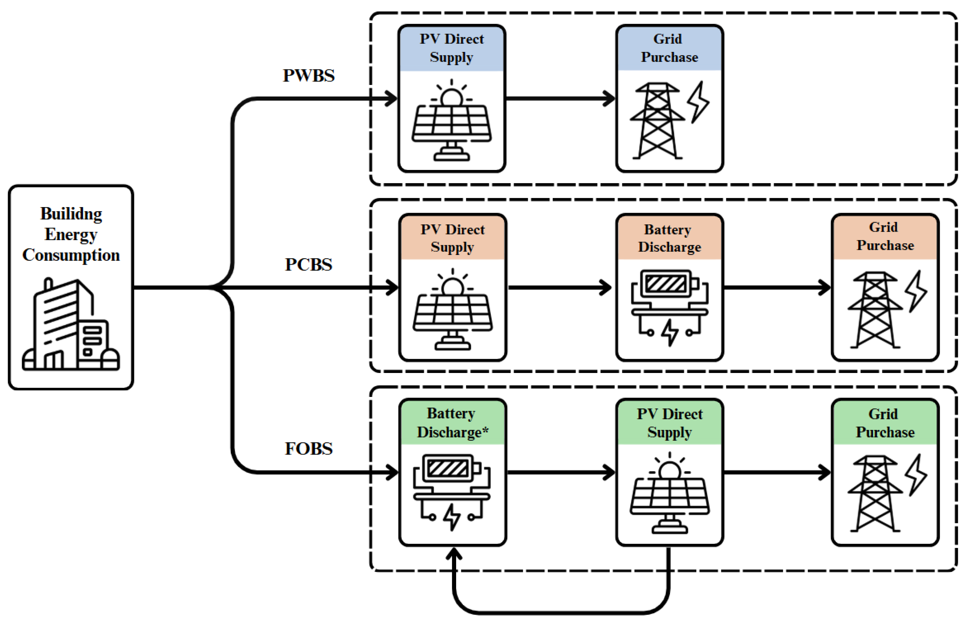 PCBS [PV with Current Battery Strategy] | PV Direct Supply + Battery Discharge[current] + Grid Purchase |