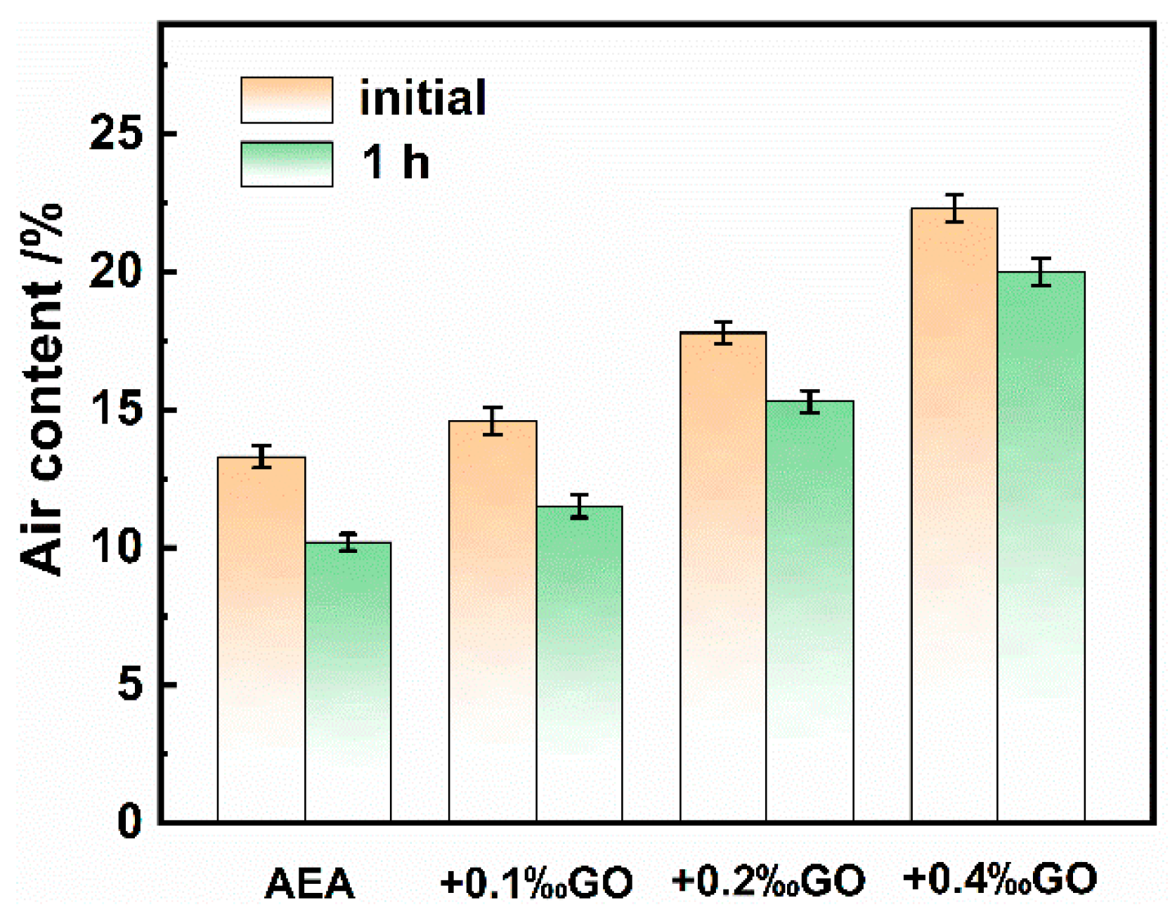 3.2. Effect of GO on Gas Content of Freshly Mixed Mortar