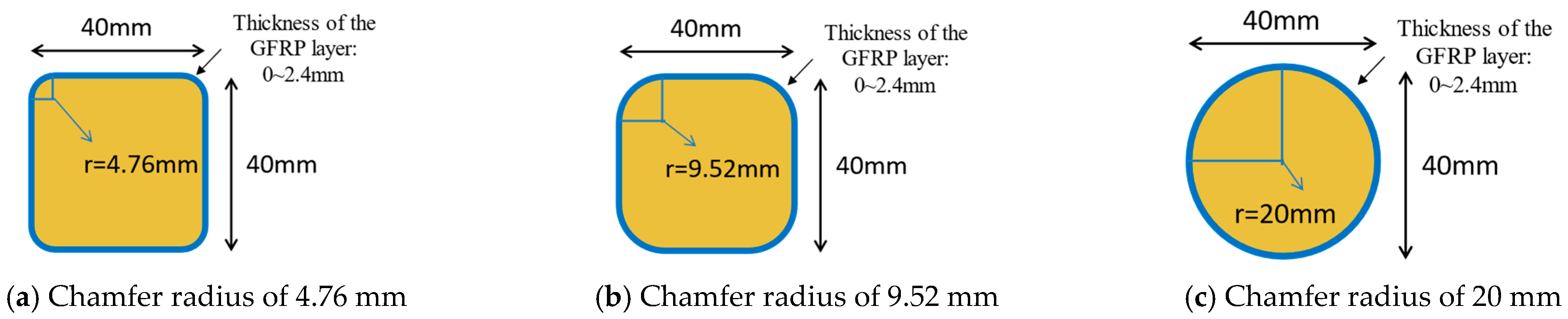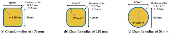 - Introducing a 9.52 mm chamfer radius effectively mitigated stress concentrations and elevated the load-bearing capacity by 14.07% relative to a 4.76 mm radius. However, enlarging the radius to 20 mm caused a marked decline in capacity, as the pronounced reduction in cross-sectional area outweighed the benefits of further stress relief.