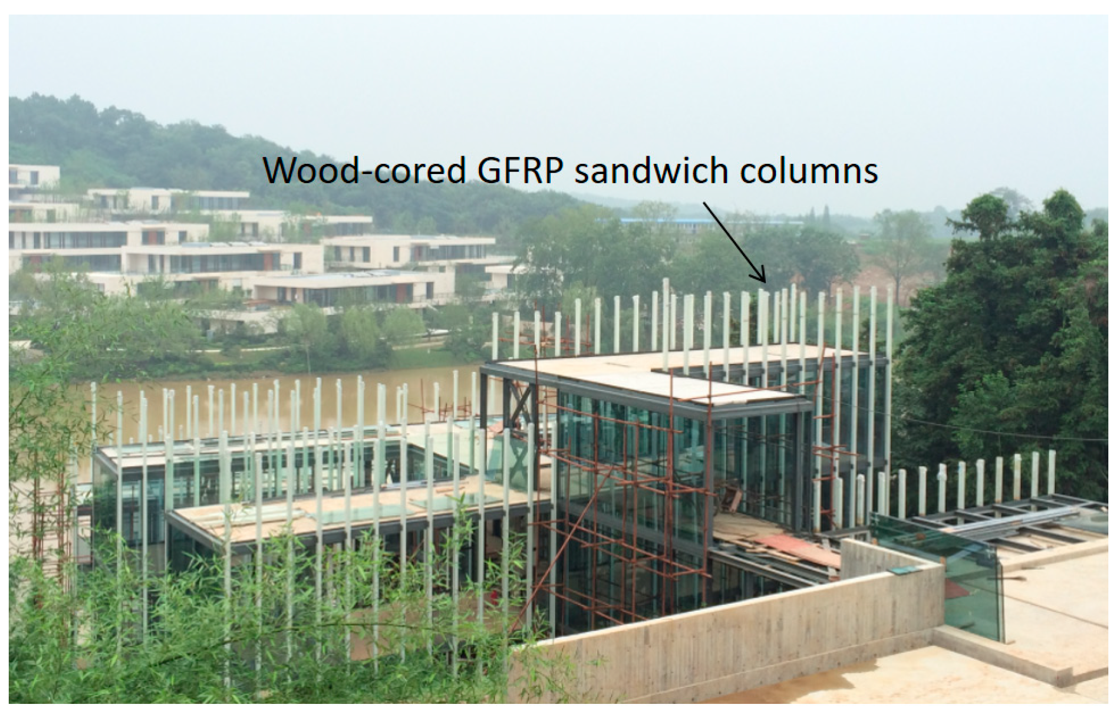 - Yang, L.; Li, X.; Fang, H.; Liu, W.; Hong, J.; Hui, D.; Gaff, M. Compressive behaviour of wood-filled GFRP square columns with lattice-web reinforcements. Constr. Build. Mater. 2021, 310, 125129. [Google Scholar] [CrossRef]