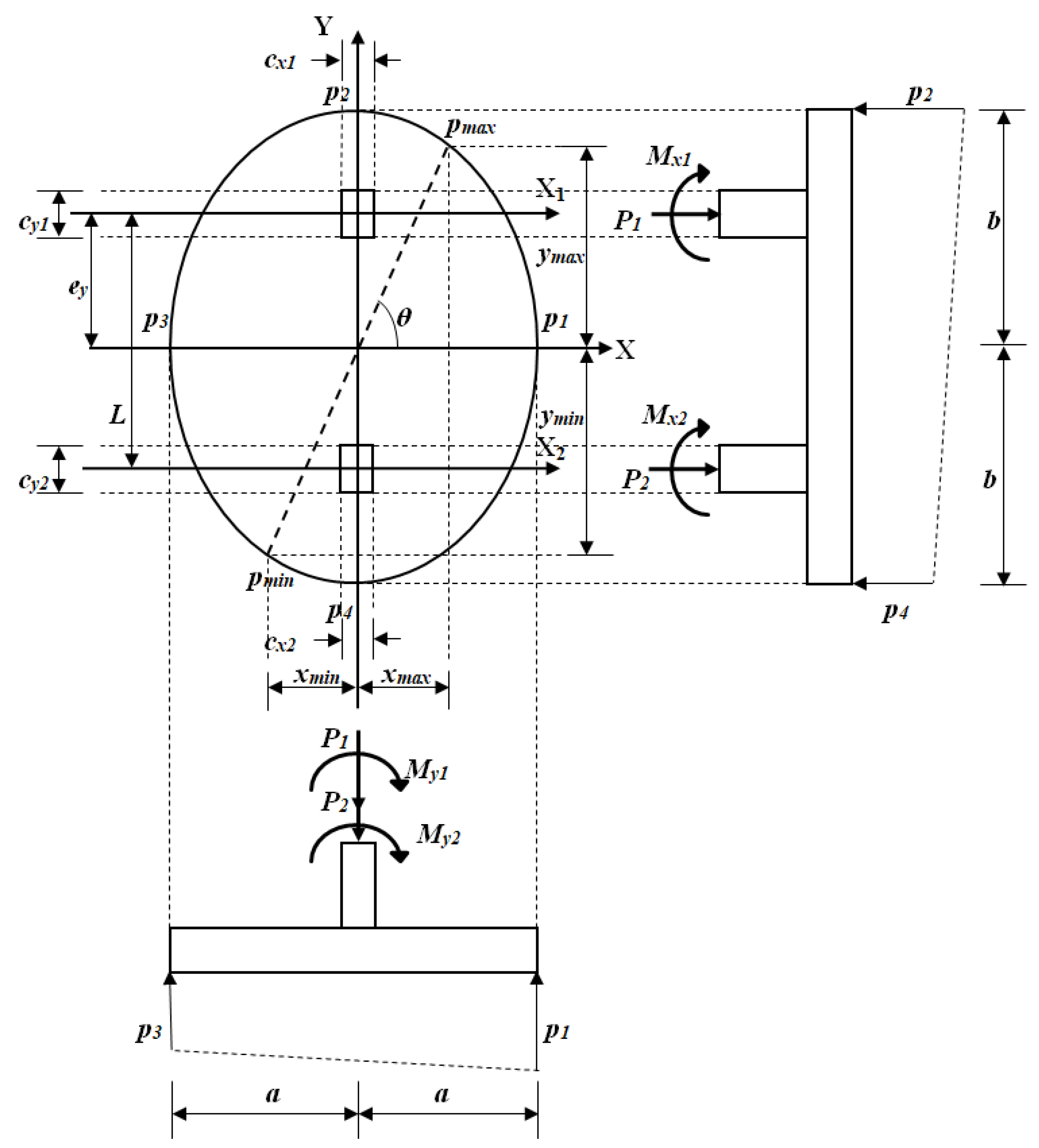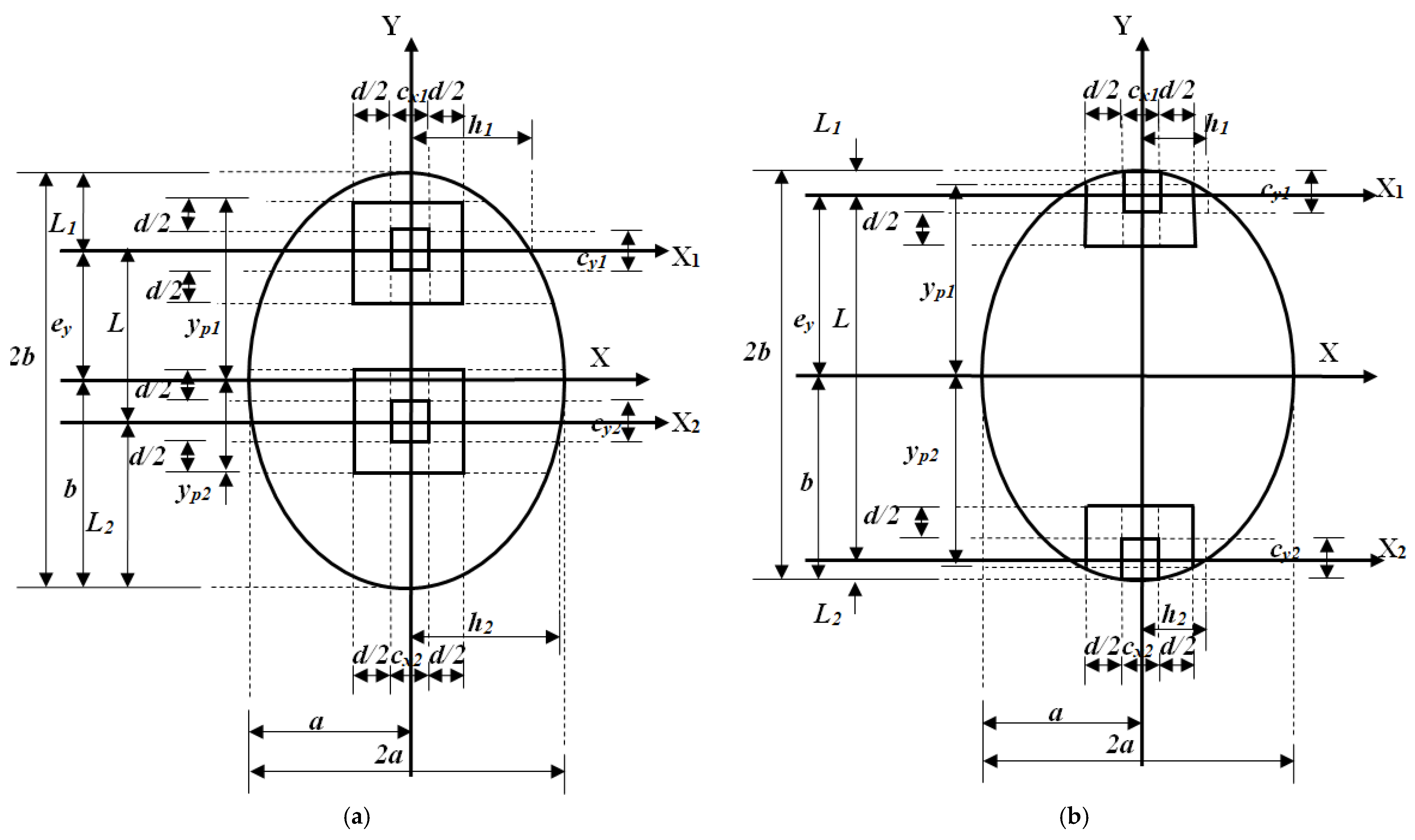 - Luevanos-Soto, I.; Luevanos-Rojas, A.; Moreno-Landeros, V.M.; Santiago-Hurtado, G. Minimum area for circular isolated footings with eccentric column taking into account that the surface in contact with the ground works partially in compression. Couple Syst. Mech. 2024, 13, 201–217. [Google Scholar] [CrossRef]
