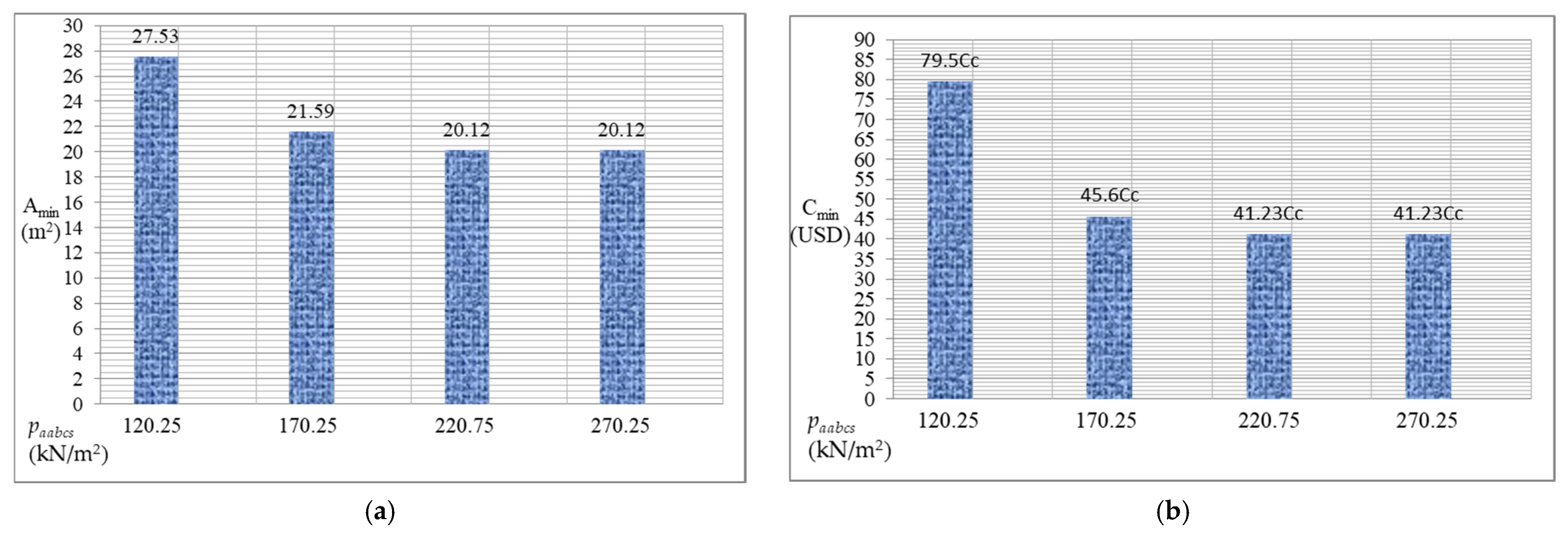 - When the allowable bearing capacity of the ground “pabcs” increases with free ends in the Y direction for these examples, the minimum cost “Cmin” decreases (see Table 6).