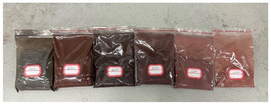 In addition, the appearance of hematite in the calcined coal gangue samples after 600 °C resulted in a color change in the treated samples. During calcination, pyrite (FeS) reacted with oxygen and produced SO2 and hematite (Fe2O3), which is also consistent with the color of the calcined gangue samples (Figure 3). There is no significant change in the diffraction peaks of G600, G700, G800 and G900, indicating that the structure of the mineral enters a relatively stable temperature range. This is also in agreement with the results of Zhang et al. [].
