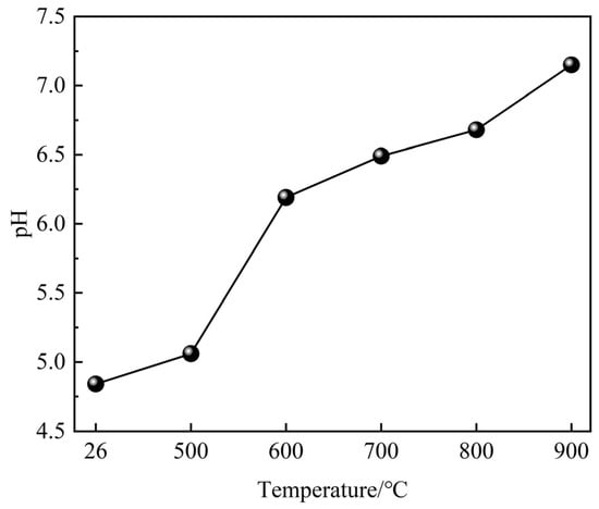 The pH of calcined coal gangue after different thermal activation is shown in Figure 9.