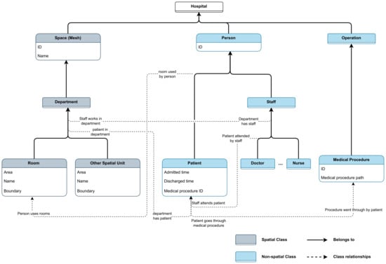 - Use case 7: The hospital director can use this system to develop a digital twin for simulating the operational management of the existing hospital during the operation and maintenance stage. A digital twin can help hospital directors assess the impact of changes on system performance and predict the result of specific medical procedures [30]. For this use case, the needed information is the topological information of the hospital graph and the operational information, such as the patient’s journey.