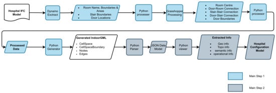 - Diakite, A.A.; Díaz-Vilariño, L.; Biljecki, F.; Isikdag, Ü.; Simmons, S.; Li, K.; Zlatanova, S. IFC2INDOORGML: An open-source tool for generating IndoorGML from IFC. Int. Arch. Photogramm. Remote Sens. Spat. Inf. Sci. 2022, 43, 295–301. [Google Scholar] [CrossRef]
