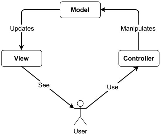 - Geeks for Geeks. MVC Design Pattern, 2017. Section: Design Pattern. Available online: https://www.geeksforgeeks.org/mvc-design-pattern/ (accessed on 10 November 2024).