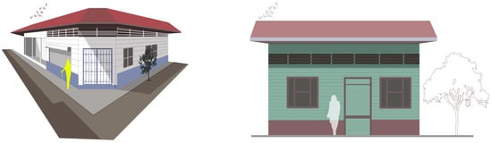 These buildings have been designed in accordance with passive strategies, which have been implemented through the application of traditional knowledge. This allows for adaptation to the specific characteristics of the site. It is important to note that Puntarenas is characterized by a tropical climate with a short and moderate dry season, as well as a long and very severe rainy season. The average maximum temperature is 31.0 °C, while the minimum is 22.7 °C [21]. Therefore, environmental adaptation was essential to improve aspects such as ventilation in order to generate comfort.