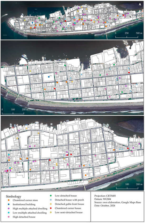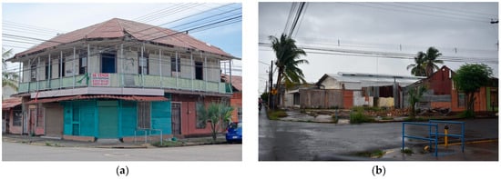Documentation and information records about vernacular architecture buildings ensure the preservation of this knowledge for future generations and the protection of these properties [23]. Several case studies [24,25,26,27,28,29] illustrate the methodological relevance of the inventories. In the case of the city of Puntarenas, the methodology applied is based on the researchers’ previous experience, as demonstrated by their work on the inventory of Costa Rican Caribbean architecture [30]. To enhance the identification processes, the research team employed a range of techniques, including participatory workshops and focus groups to validate the characteristics and inventory, urban tours with community leaders, the definition of typologies based on architectural characteristics and use, and the utilization of supplementary resources such as old photographs shared on social networks by community members and drone flights.