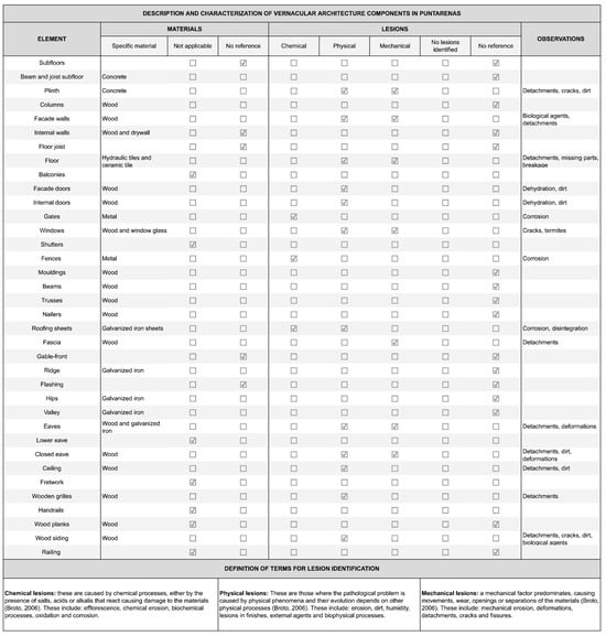 The authors would like to express their gratitude to the Vice-Rectory of Research and Extension of the Technological Institute of Costa Rica for providing financial support for the research project, “Characterization of the vernacular wooden architecture of the city of Puntarenas from an interdisciplinary perspective”. They also extend their appreciation to the remaining research team members, Dawa Méndez-Alvarez, Roger Moya-Roque, William Rivera-Méndez, Ileana Hernández-Salazar, Danilo Valerio-Alfaro, Mauricio Guevara-Murillo, and the student assistants who contributed to the project, as well as the members of the Puntarenas community who participated in the study.
