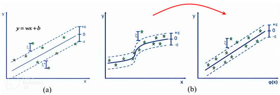 Illustration of Support Vector Regression (SVR) with different kernel functions: (a) linear, (b) nonlinear [58].